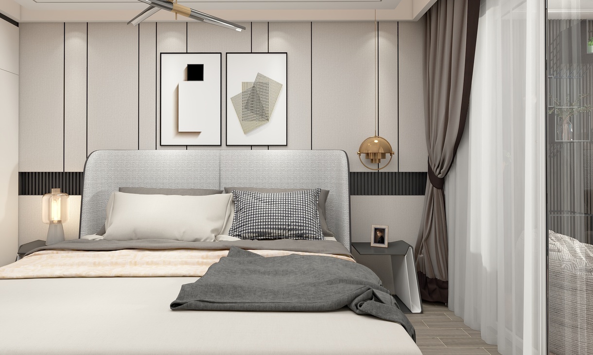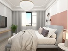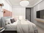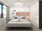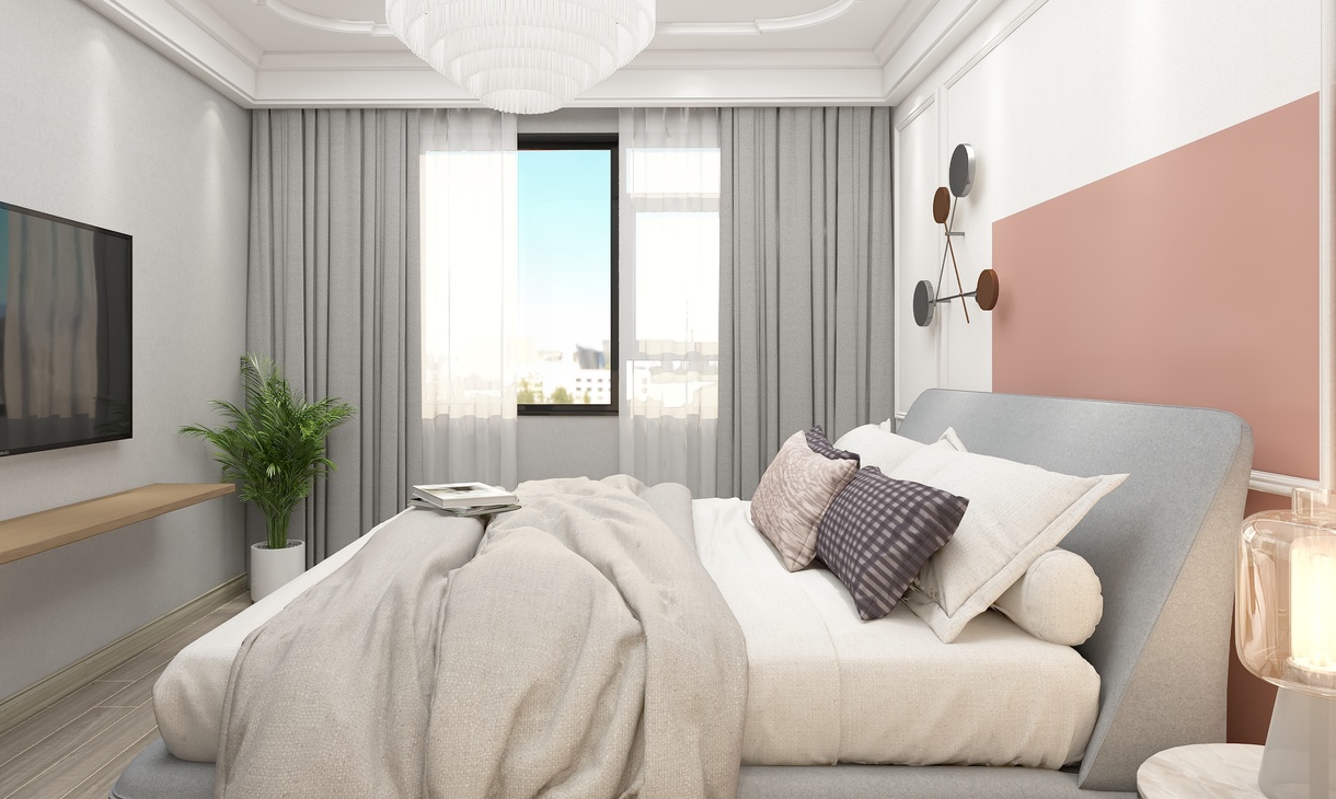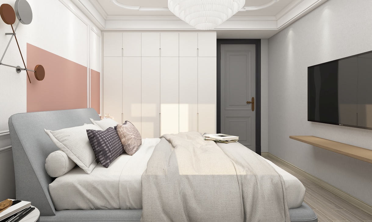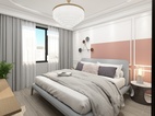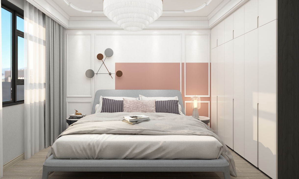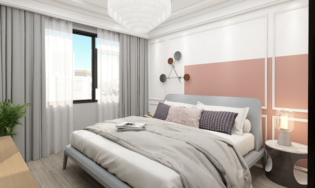 客卧背景墙粉白乳胶漆造型,简约也带着ins风