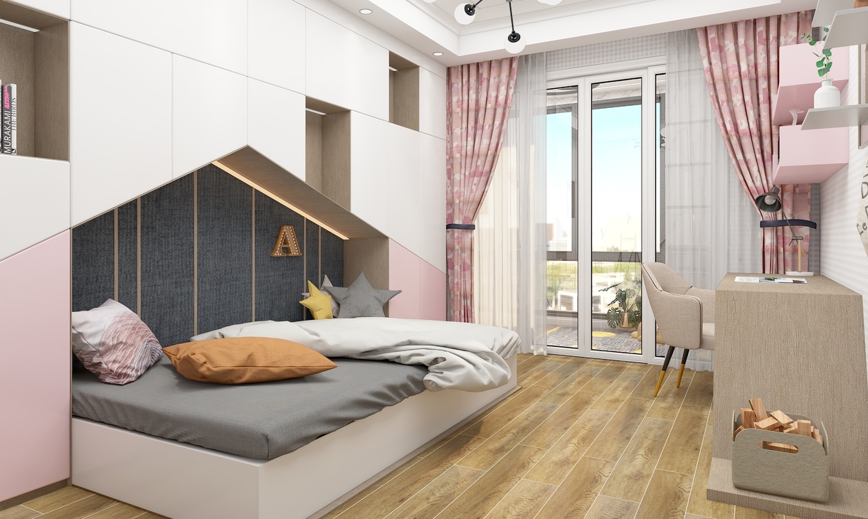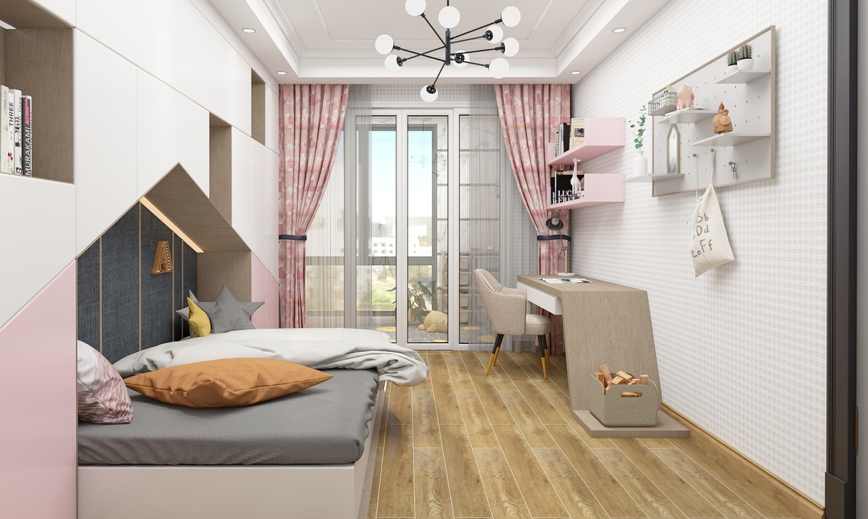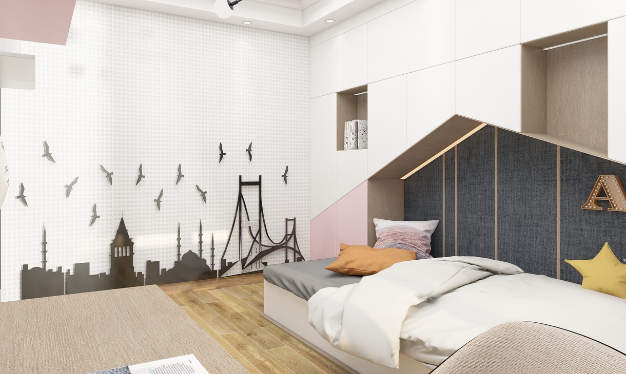 嵌入式的儿童床,扩大了儿童房的游玩空间,两边的柜子作为日常储物使用