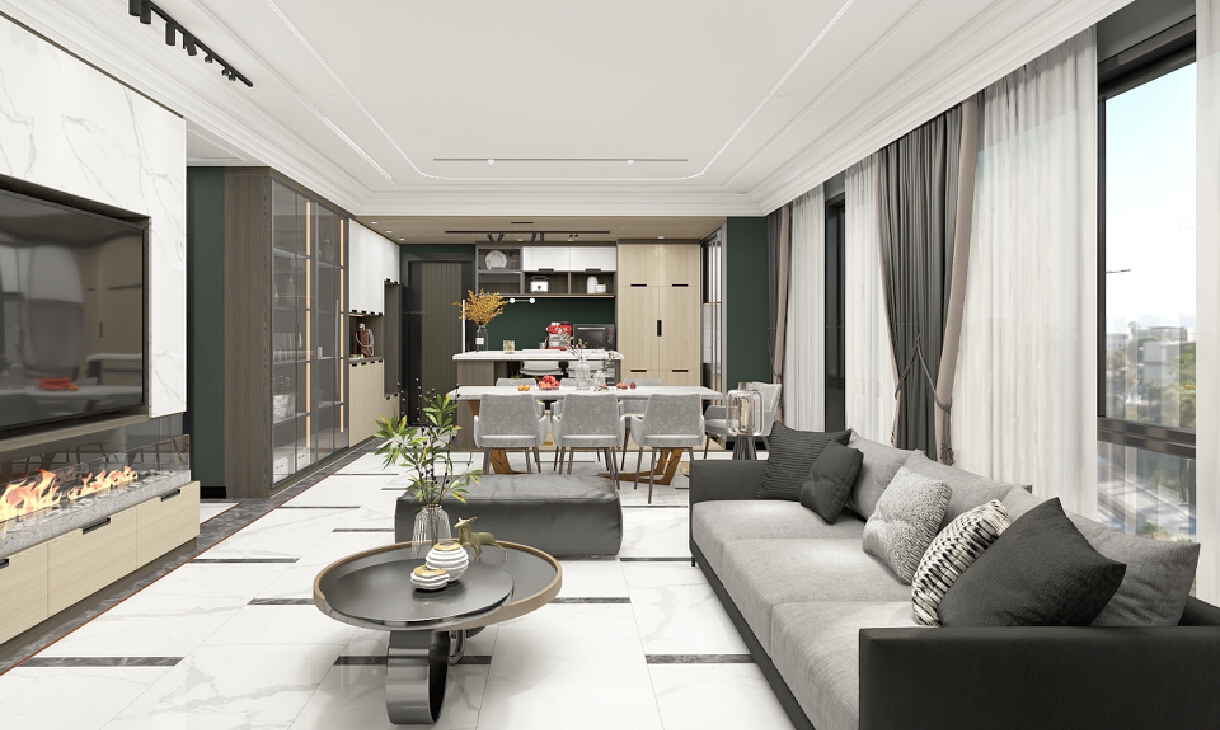 每个空间至少2张效果图+1张全案全景图展示,方案描述完整,所有空间需命名。
