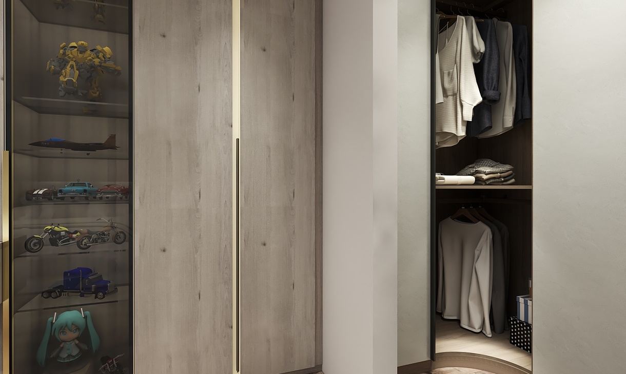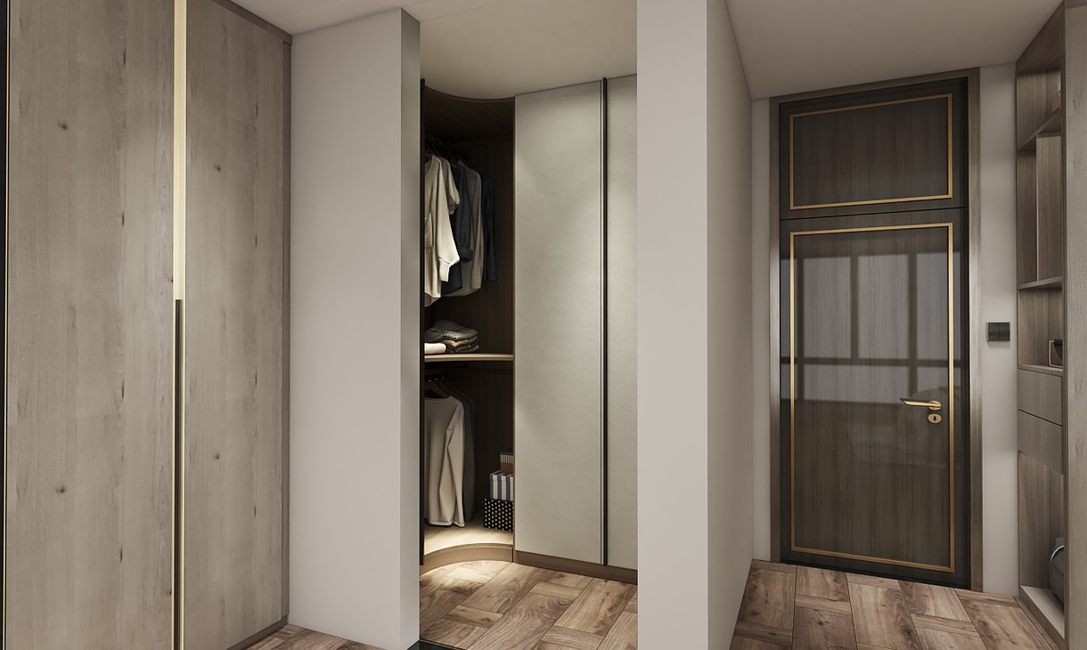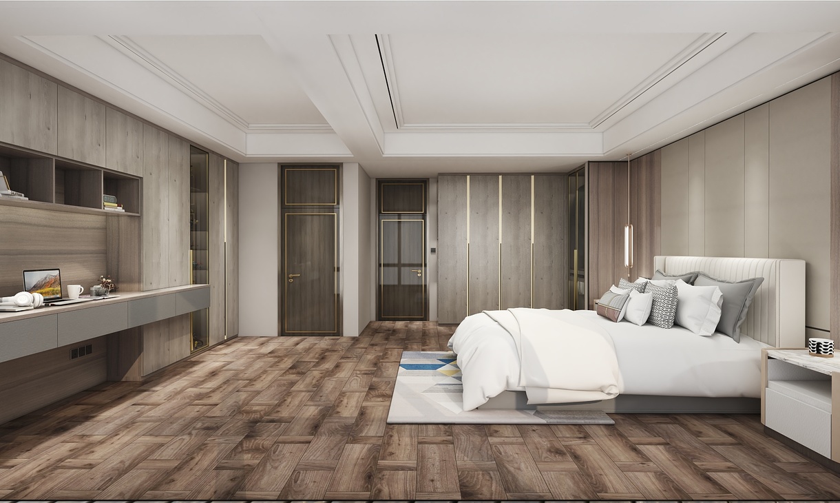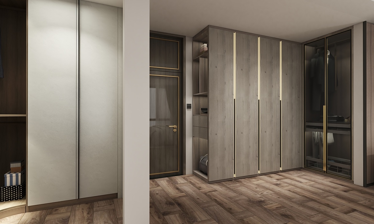 将经典隽永的木质纹理大幅运用于家居空间,搭配到顶式阵列格局,以亲近自然的设计语言诠释现代生活的平衡与简洁。