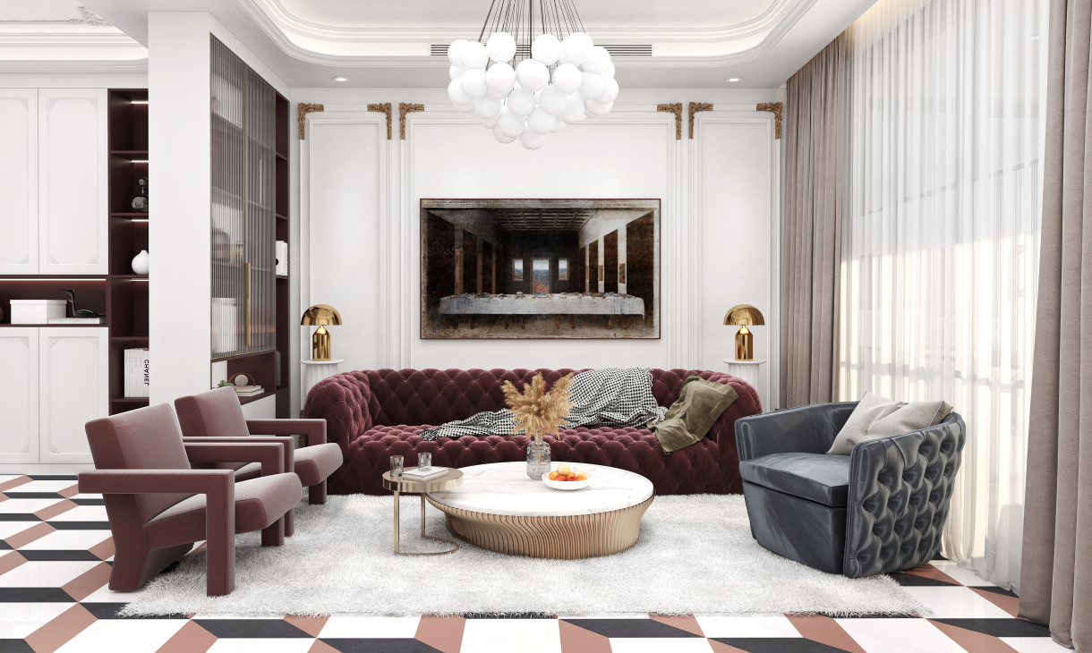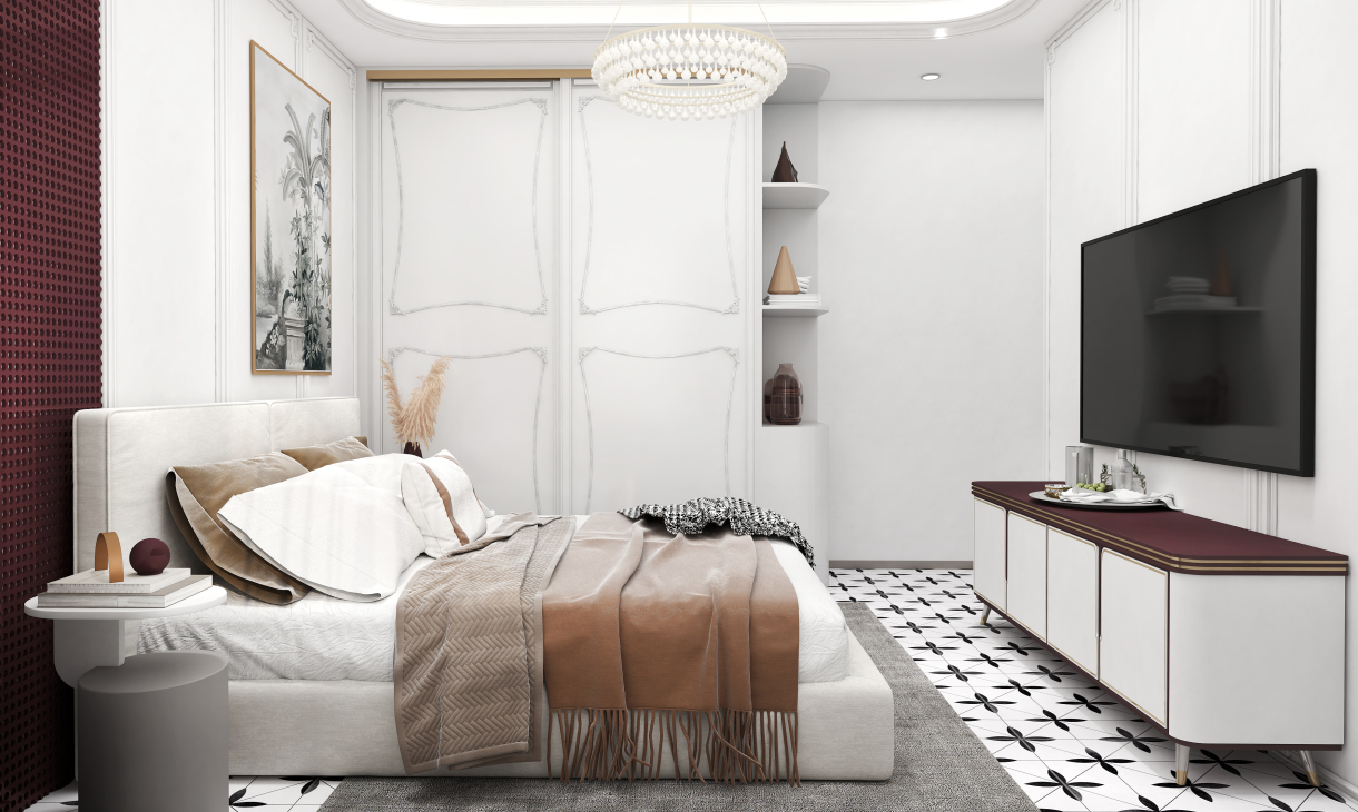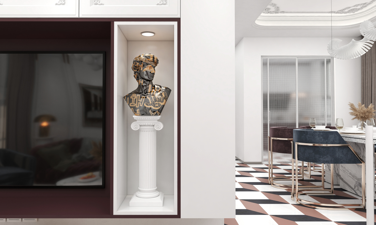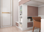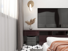 后现代--在设计里,后现代风格一直都是一个很模糊的概念,它没有统一的标准,是一个自由、多元的存在,借用一切往昔的艺术手法或当下现成的材料来表述核心思想。方案里运用非传统的混合、叠加、错位、裂变等手法创造一种融感性与理想,集传统与现代于一体的室内环境,把这种形式风格应用到家装里需要把握一定的尺度,所以我在颜色的运用上进行了降纯降度处理,以红紫和灰蓝为主调,大面积留白,让空间更为整体,既满足实用性又保留了情调