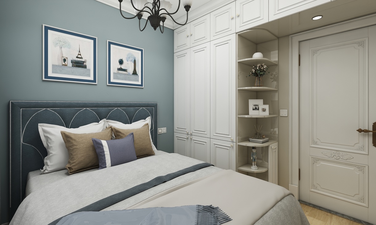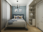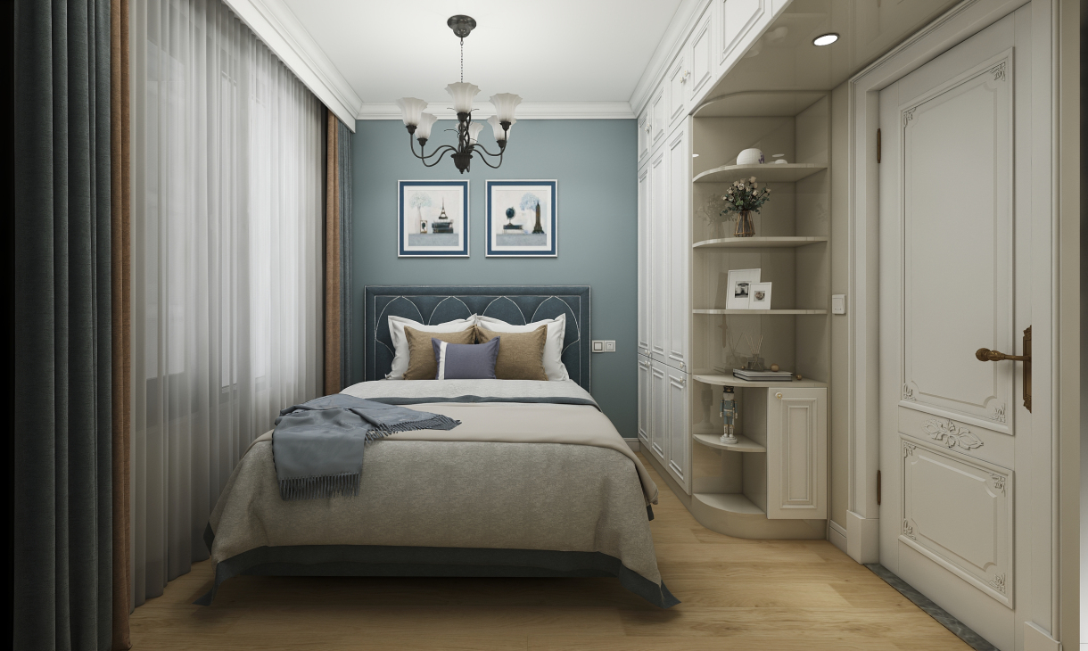 卧室配了蓝色的基调搭配整体的暖色系布局,