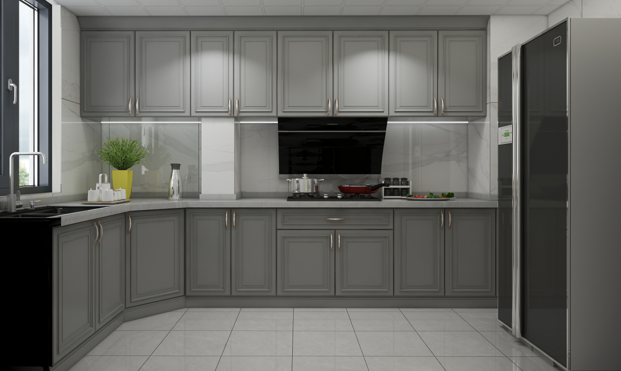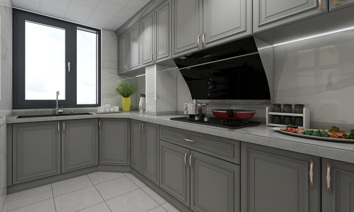厨房要求高级灰,挑选了一个空间运营黑白灰色系。