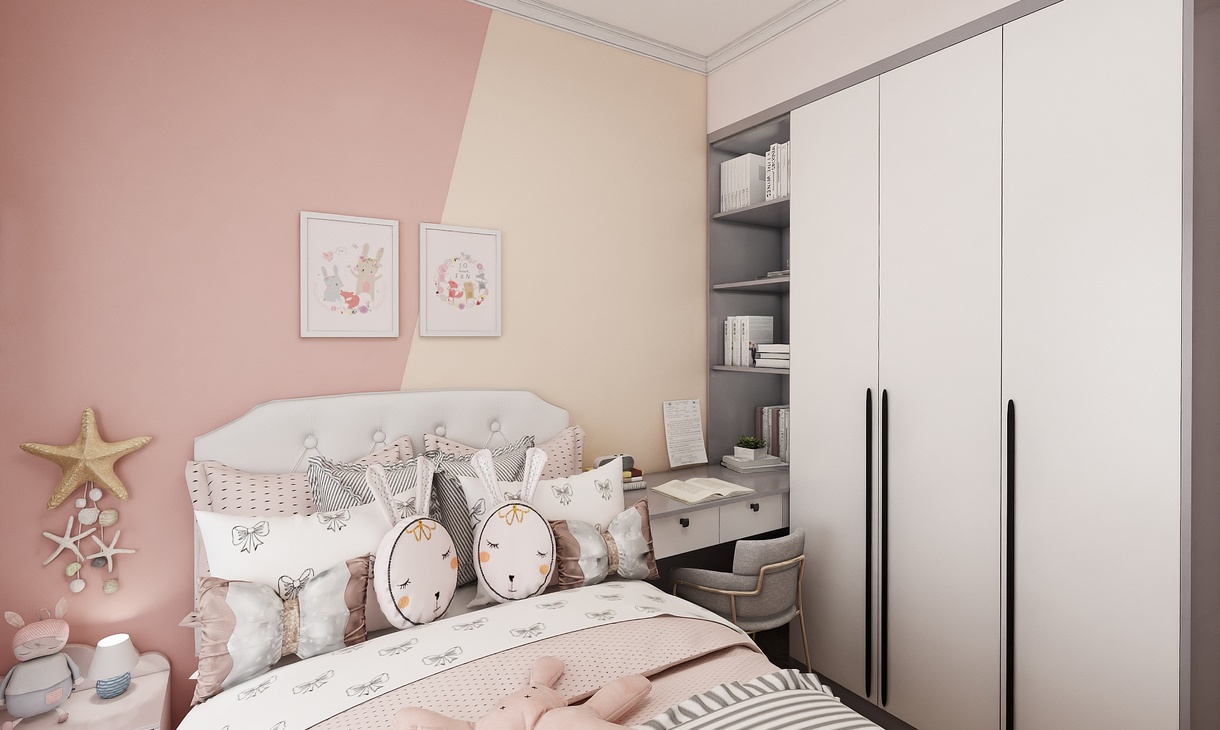 效果图:全屋概览效果图、客厅效果图、餐厅效果图、厨房效果图、儿童房效果图、主卧效果图
