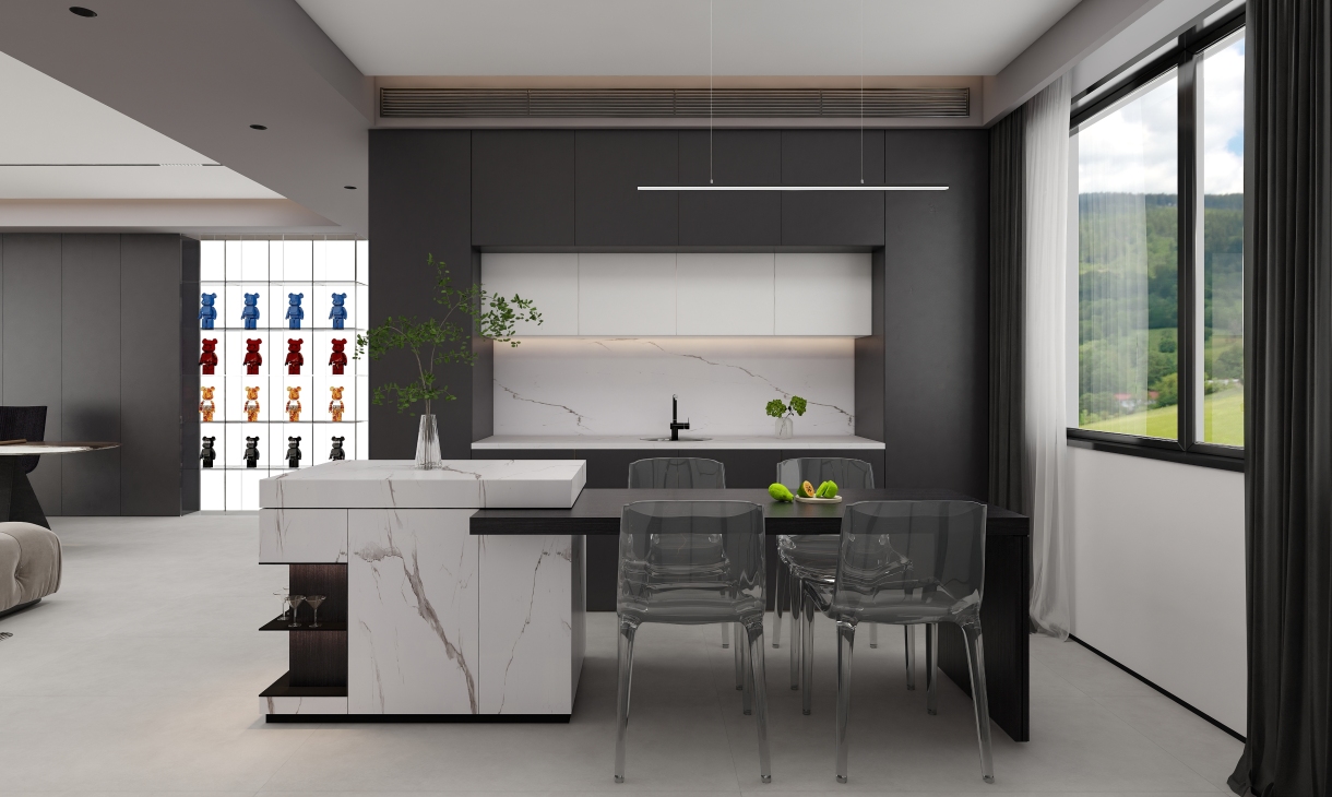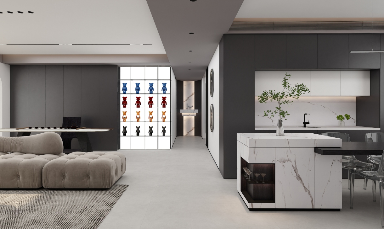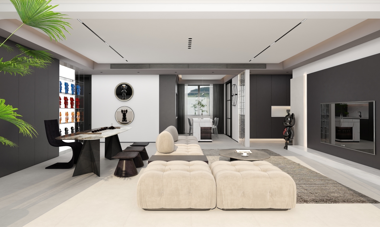 色彩赋予空间最妥帖的适度表达,黑白灰的调配组合,于清冷中焕发生机,雅致而盎然。缓缓治愈岁月里的成长桥段。