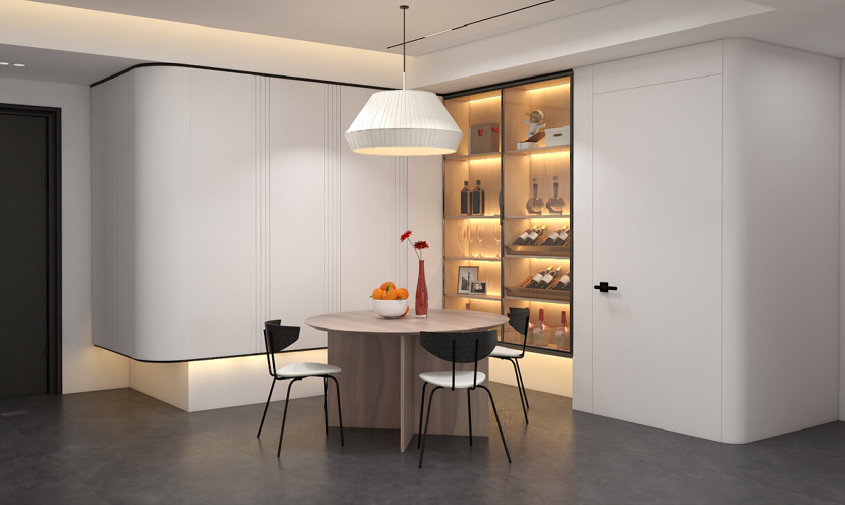 空间里用柔和的温暖色+白色诠释空间的温度,打造舒适灵动却不失力量的温暖气场。