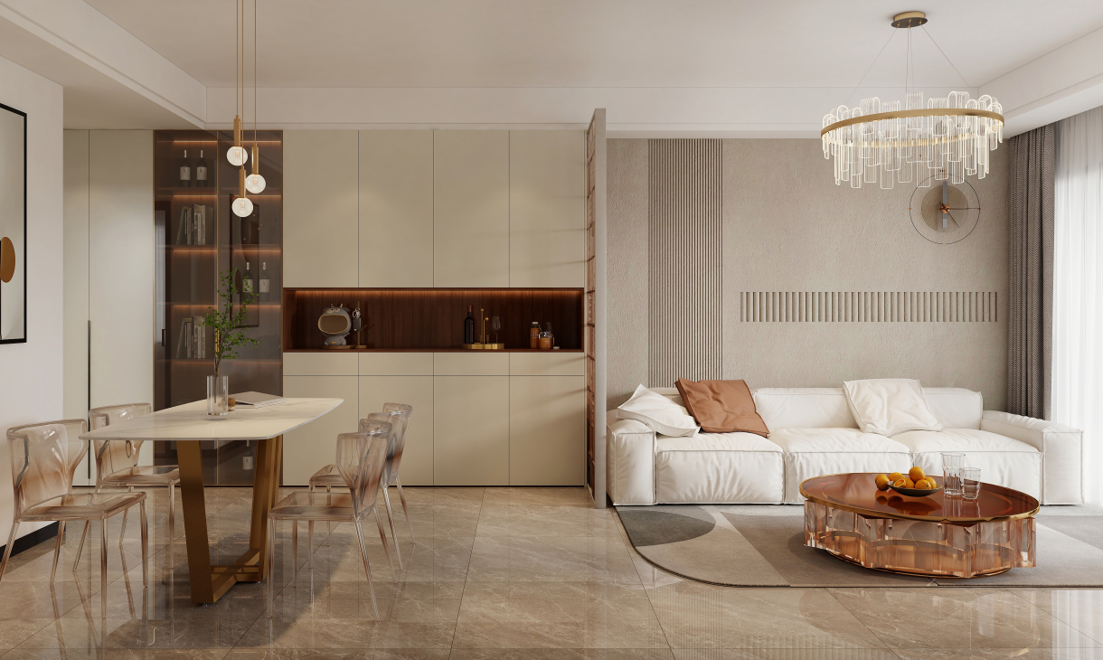 每个空间至少2张效果图+1张全案全景图展示,方案描述完整,所有空间需命名。