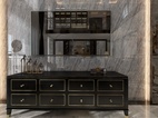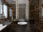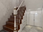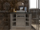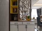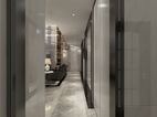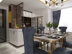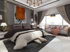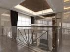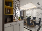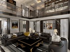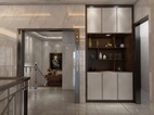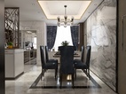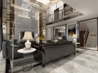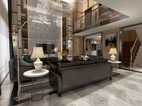 此方案风格为现代高端, 双层高挑的客厅空间,大理石的墙面,凸显出建筑结构和现代感,也最大程度的吸收了采光。顶上的吊灯为业主设计为巨型金属水晶灯,不受拘束的结构,自由大胆的金属线条,宛若艺术品一般悬浮在空中,体现出装饰艺术的高雅。客厅,应当彰显的是主人非凡的品味。 从业主的喜好入手,迎合了男主人对中式元素的偏爱,为这一原本极具艺术气息的空间,融入了鲜明的个人色彩。