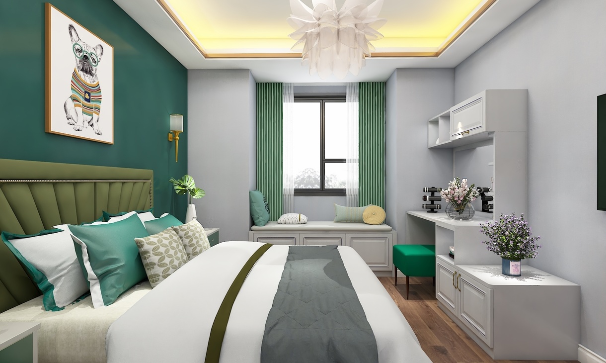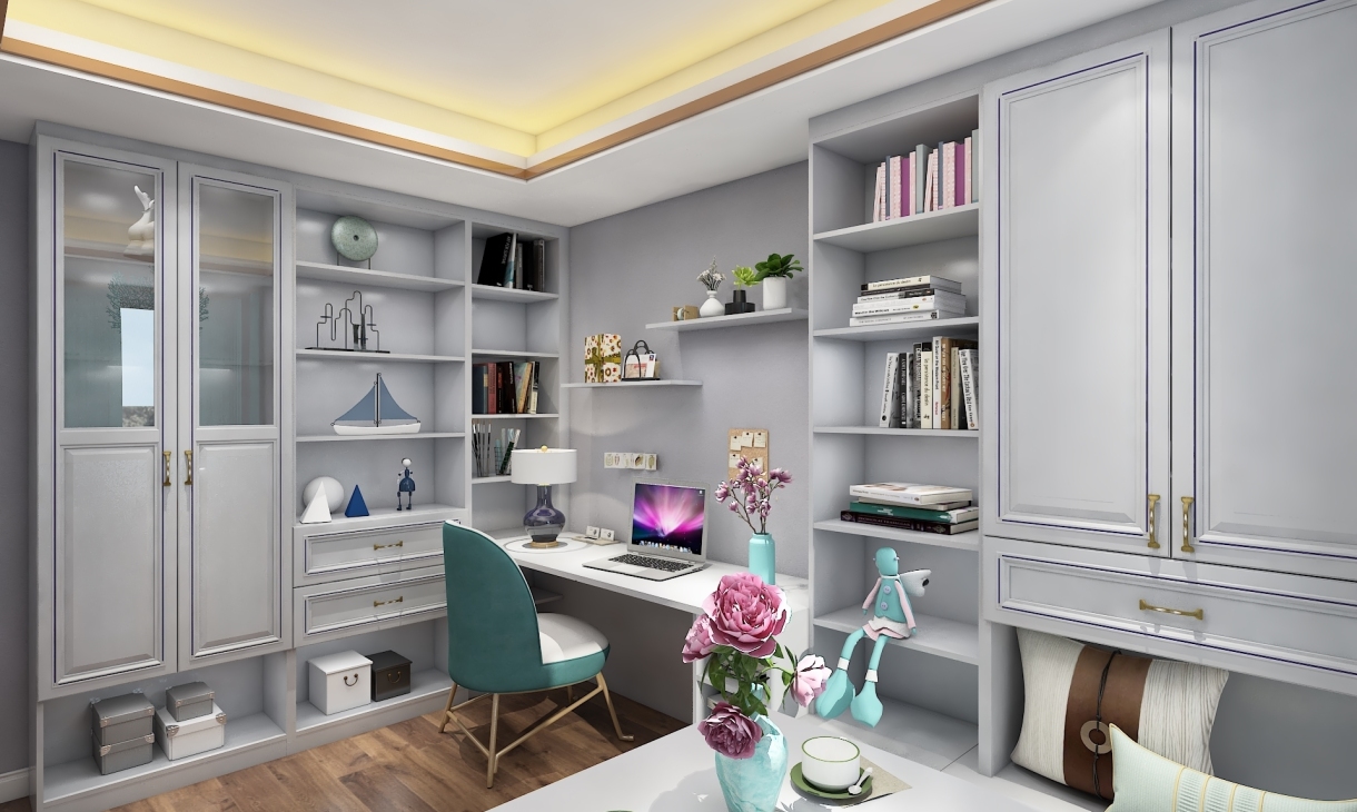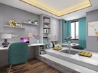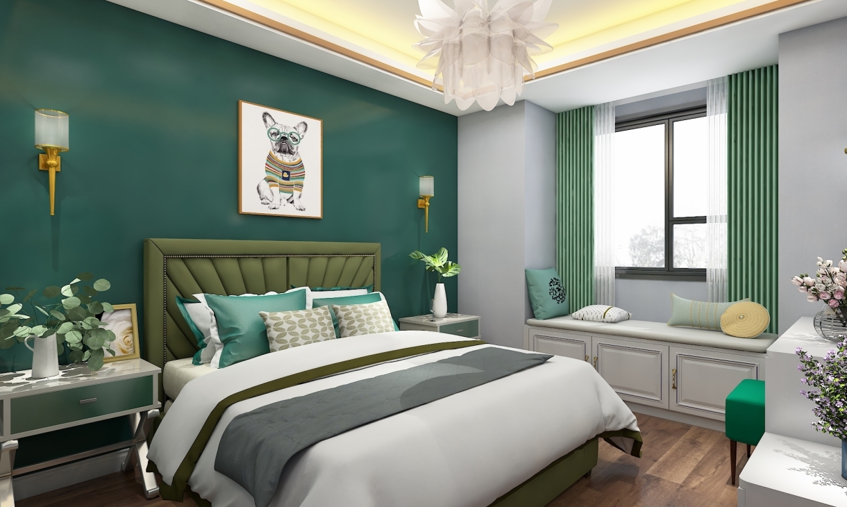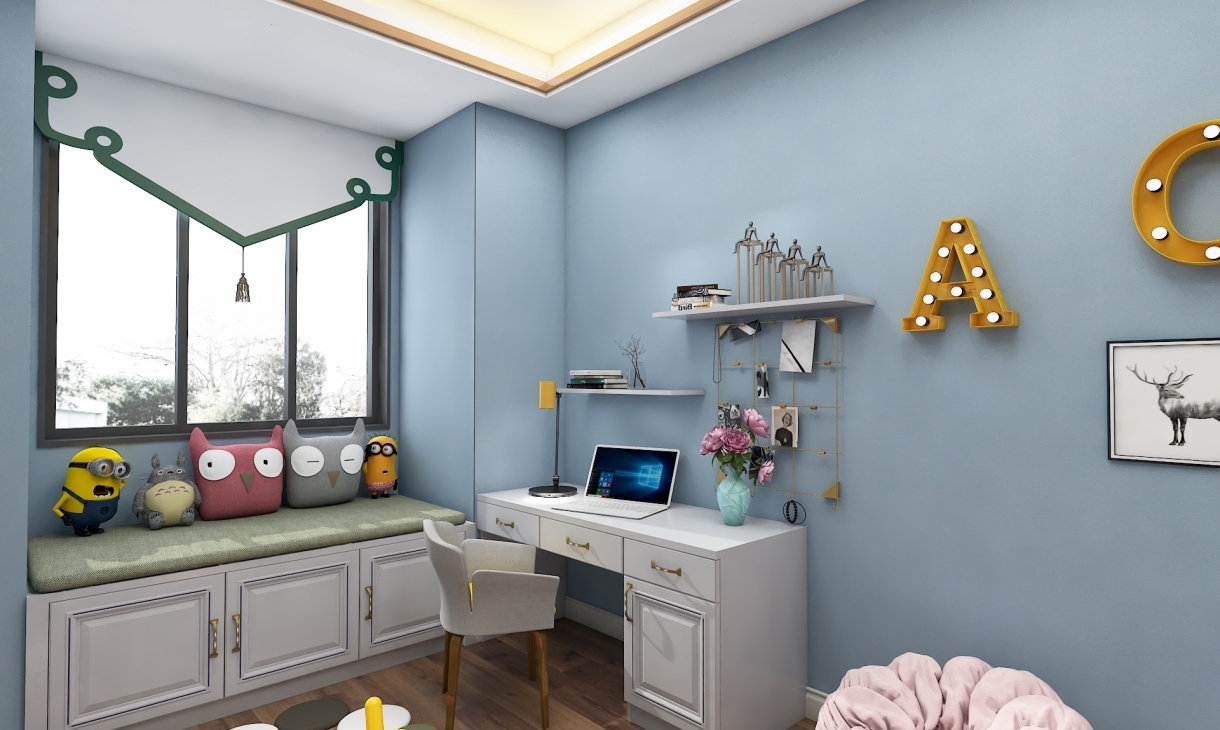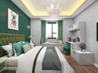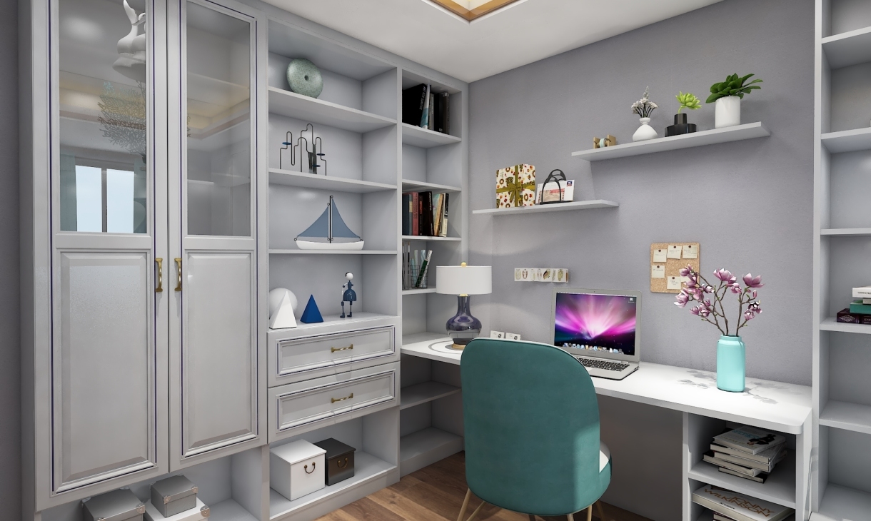 以“绿野仙踪”为主题,整体风格是现代轻奢,融入有“温度”的色彩,如孔雀蓝、松石绿、樱花紫、蒂芙尼蓝等颜色,会给家人带来开心和愉悦,同时也表现出对生活乐观、自由、无所畏惧的态度,给整个空间赋予生命,是女主人最大的满足。 入户空间较小,打掉厨房墙体,做两组内嵌式柜体,一组作为鞋柜来使用,扩大了鞋柜的储存量,靠近阳台的一组作为餐边柜来使用,同时餐厅另一边也做了一组餐桌高柜,有露有藏,满足餐厅物品的收纳,玻璃门的设计使得餐厅空间更为通透,与餐桌齐平的高度设计了开放格,可设计插座与USB接口,在餐桌上临时工作时可方便电脑与手机的通电;书房做了一组榻榻米+书柜+书柜+衣柜的组合柜,榻榻米设计了升降台与高低台阶,平时可作为书房、茶室使用,有客人时也可作为客卧使用;主卧与次卧都设计了梳妆台+飘窗+衣柜,可收纳卧室里的小物件、衣物,飘窗可满足休闲阅读的功能;客厅设计一组差大的电视柜,可满足一家公共物品的收纳,如书籍、药品、影集、纪念品等;卫生间做到了干湿分类,洗手池设计在外面,即使是早上使用卫生间的高峰期,也可满足两人同时使用。