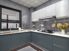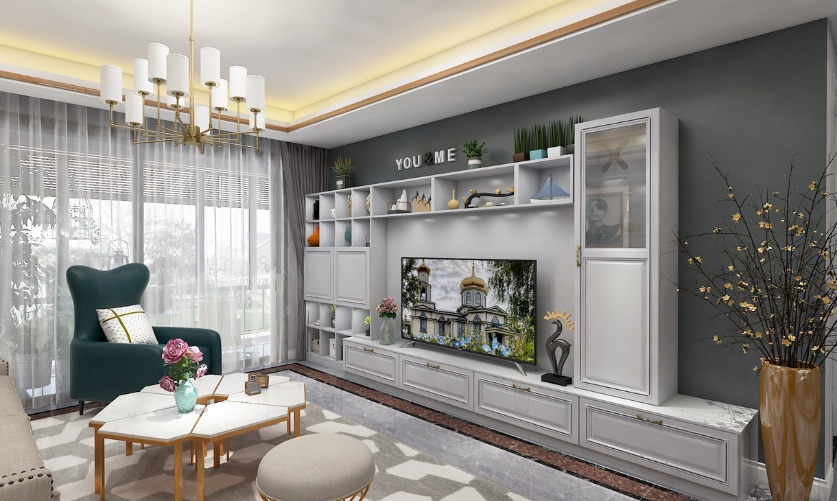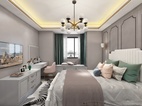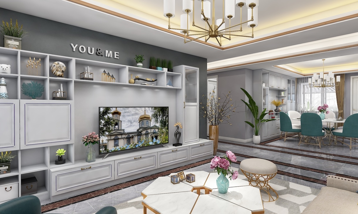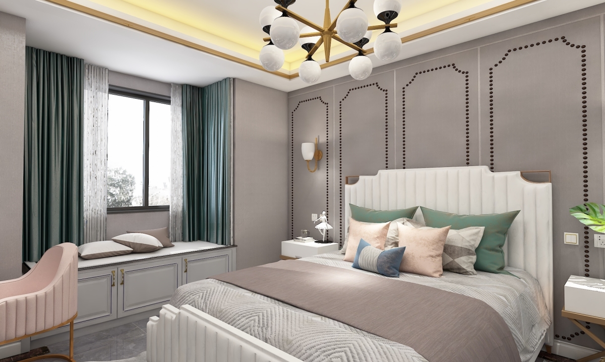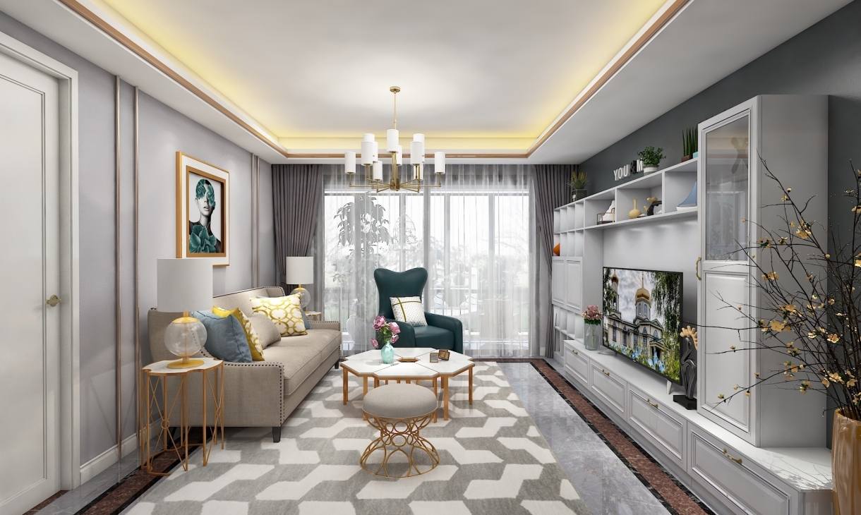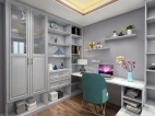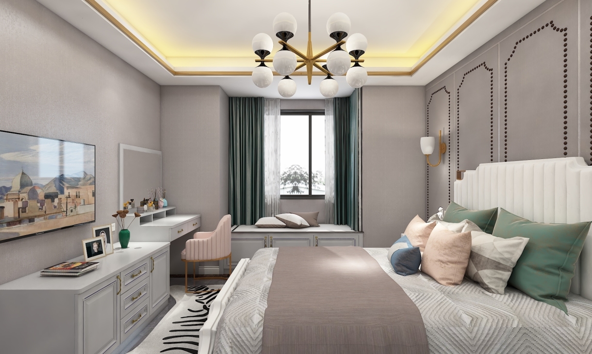 以“绿野仙踪”为主题,整体风格是现代轻奢,融入有“温度”的色彩,如孔雀蓝、松石绿、樱花紫、蒂芙尼蓝等颜色,会给家人带来开心和愉悦,同时也表现出对生活乐观、自由、无所畏惧的态度,给整个空间赋予生命,是女主人最大的满足。 入户空间较小,打掉厨房墙体,做两组内嵌式柜体,一组作为鞋柜来使用,扩大了鞋柜的储存量,靠近阳台的一组作为餐边柜来使用,同时餐厅另一边也做了一组餐桌高柜,有露有藏,满足餐厅物品的收纳,玻璃门的设计使得餐厅空间更为通透,与餐桌齐平的高度设计了开放格,可设计插座与USB接口,在餐桌上临时工作时可方便电脑与手机的通电;书房做了一组榻榻米+书柜+书柜+衣柜的组合柜,榻榻米设计了升降台与高低台阶,平时可作为书房、茶室使用,有客人时也可作为客卧使用;主卧与次卧都设计了梳妆台+飘窗+衣柜,可收纳卧室里的小物件、衣物,飘窗可满足休闲阅读的功能;客厅设计一组差大的电视柜,可满足一家公共物品的收纳,如书籍、药品、影集、纪念品等;卫生间做到了干湿分类,洗手池设计在外面,即使是早上使用卫生间的高峰期,也可满足两人同时使用。