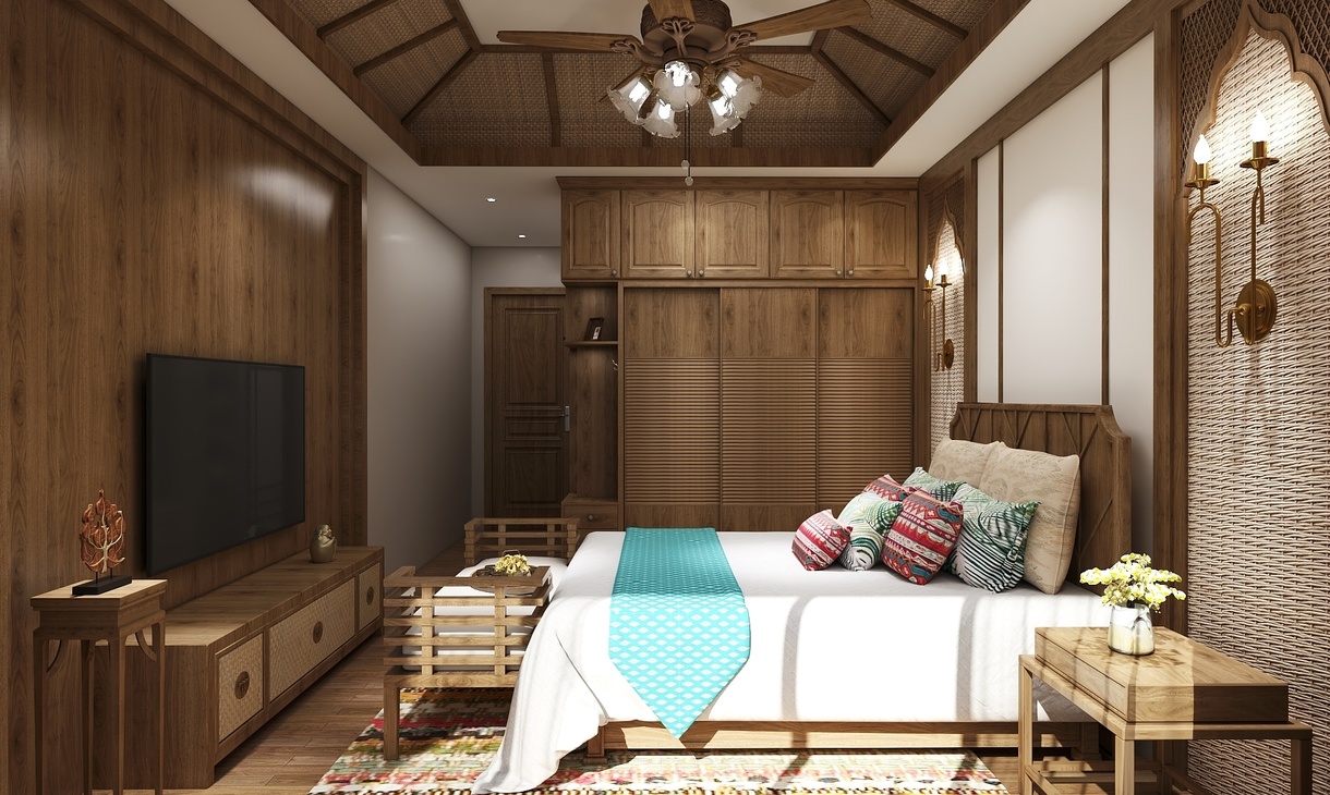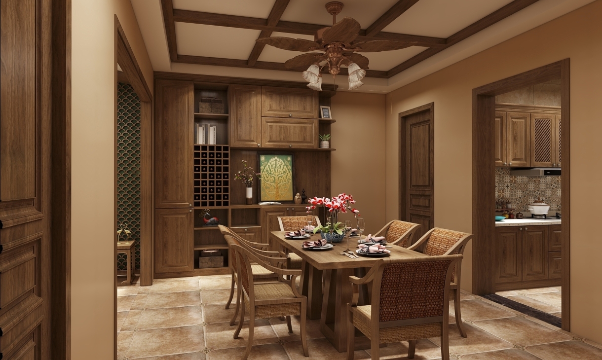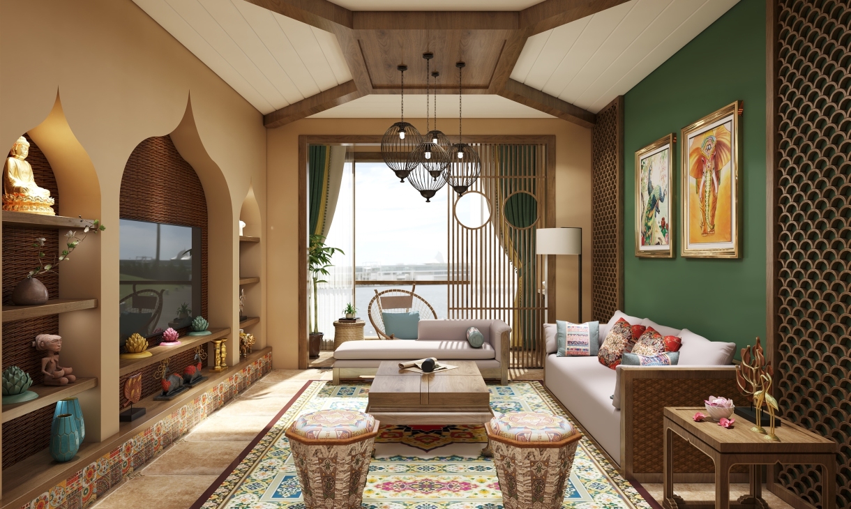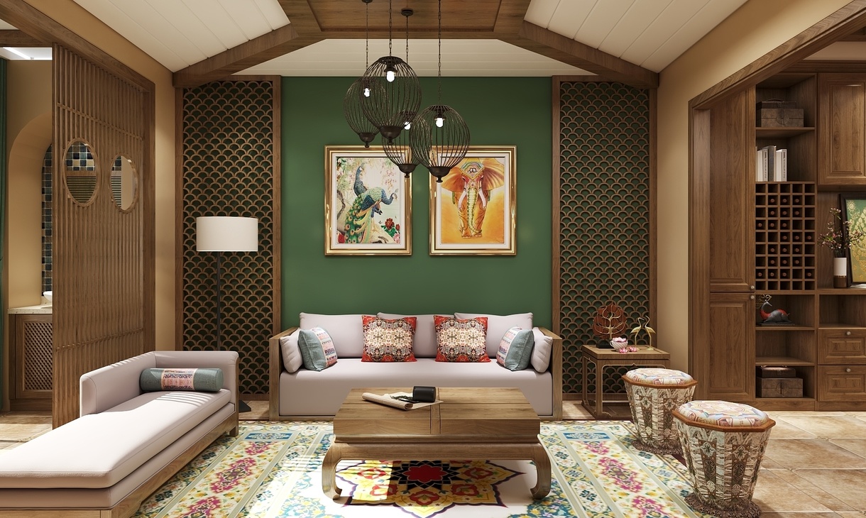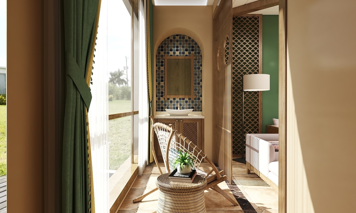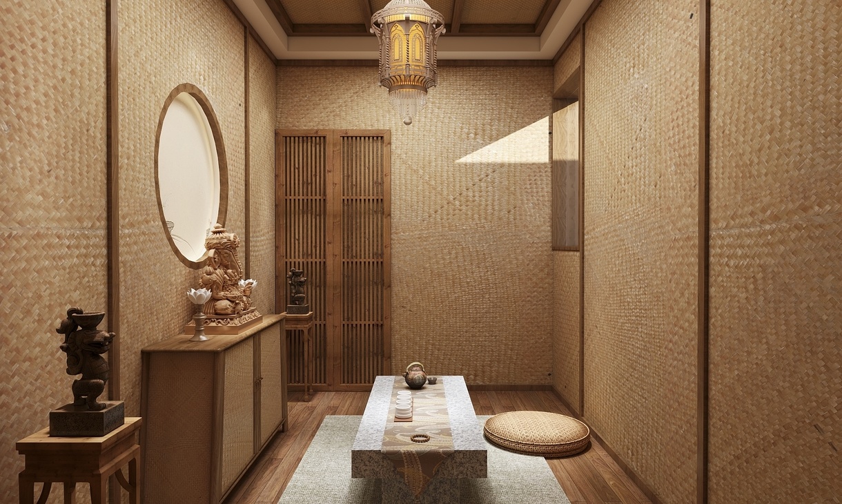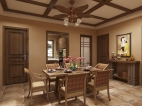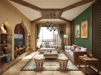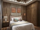 整套样板间以休闲的原味设计,点缀一抹千岁绿的颜色,让人一走入这个空间就像步入了步调悠缓的南国,让人浮想联翩。整个设计以简练的表现手法,代替一切繁杂与设计。材质以原木,棉麻,藤,精致的砂岩浮雕, 局部加入了香槟色金箔饰面。当这一切都和谐的兼容于一室时,我们便感受到的不仅仅是那种东南亚清雅休闲的气氛,也传达出了一种情调和奢华的设计观。