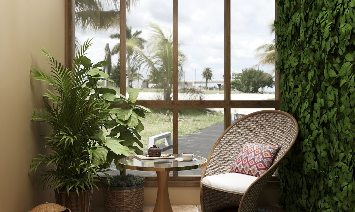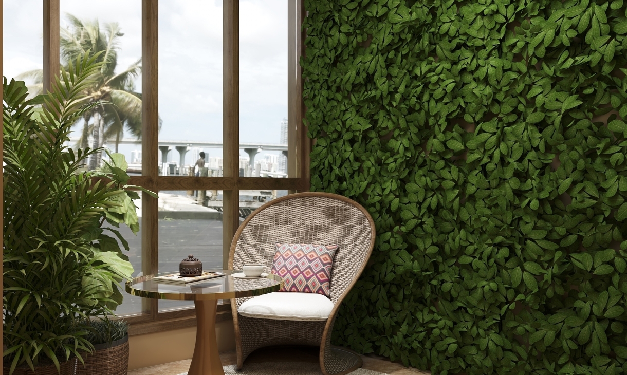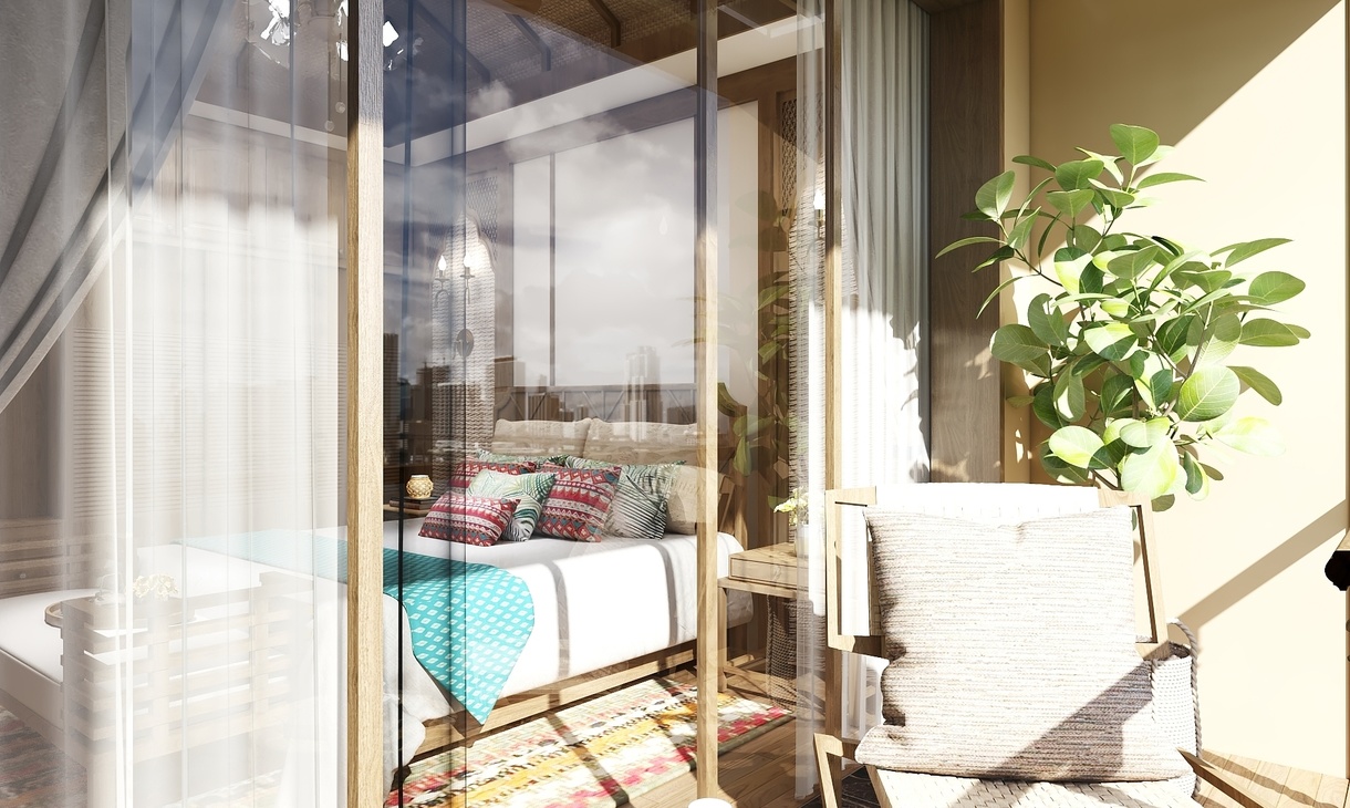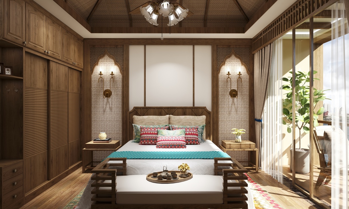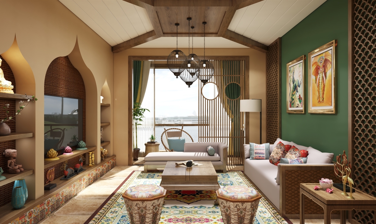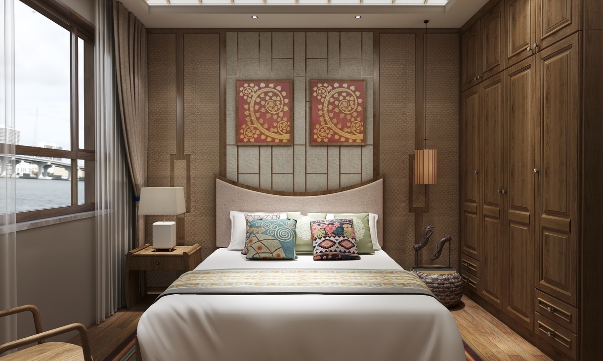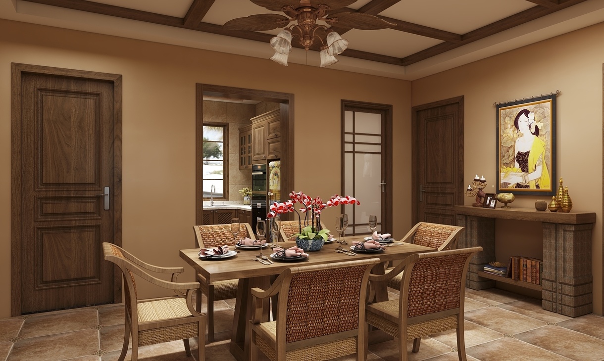 整套样板间以休闲的原味设计,点缀一抹千岁绿的颜色,让人一走入这个空间就像步入了步调悠缓的南国,让人浮想联翩。整个设计以简练的表现手法,代替一切繁杂与设计。材质以原木,棉麻,藤,精致的砂岩浮雕, 局部加入了香槟色金箔饰面。当这一切都和谐的兼容于一室时,我们便感受到的不仅仅是那种东南亚清雅休闲的气氛,也传达出了一种情调和奢华的设计观。