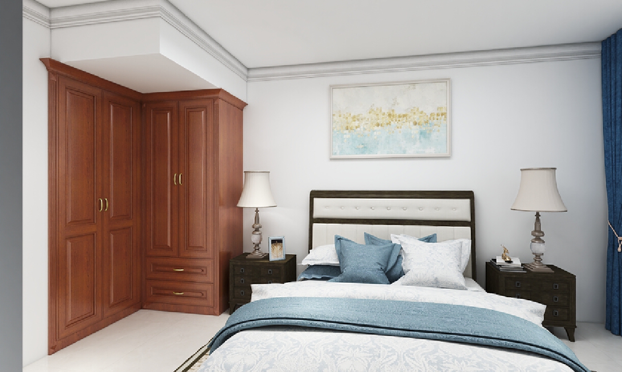 设计L型衣柜使房间看起来即视野开阔,还增加了储物型。