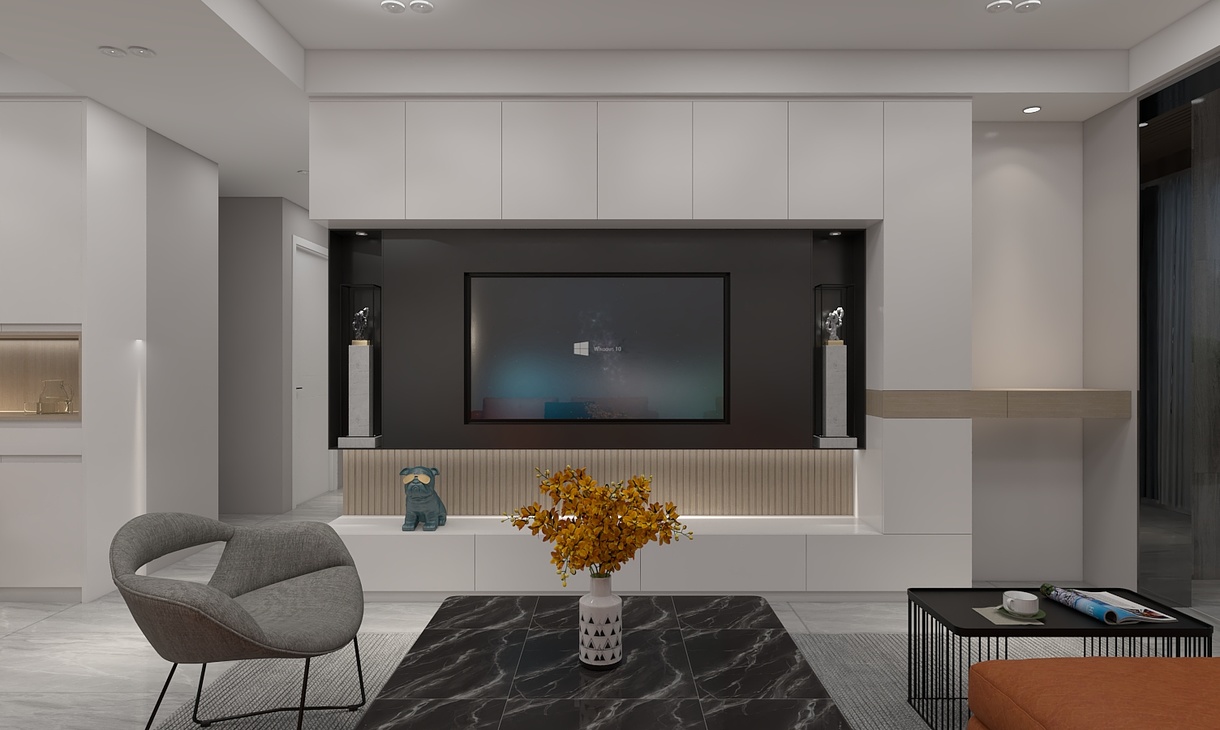 整体设计以现代简约风格为主 ,主调颜色:白色为主 黑色灰色木色橙色搭配