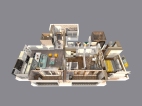 餐厅和开放式厨房融为一体。使得本来不大的空间变得更大,餐厅区域放弃了餐桌改为吧台和客厅形成统一,既是一个餐台也是一个隔断。空间视觉感更强,现代风更强。