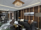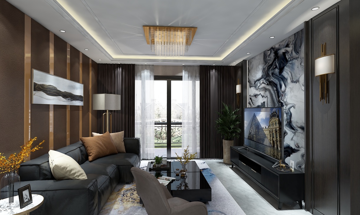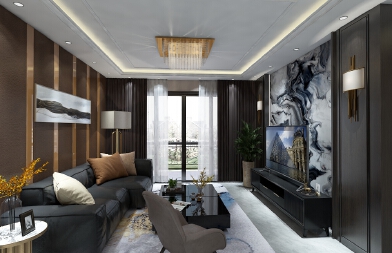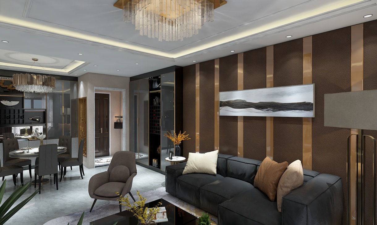 本方案以深色为主色调,彰显客户沉稳高贵的性格。在户型方面只在进门区域稍作改动,用屏风及门套的形式隔出一个小的入户用作与缓冲效果。