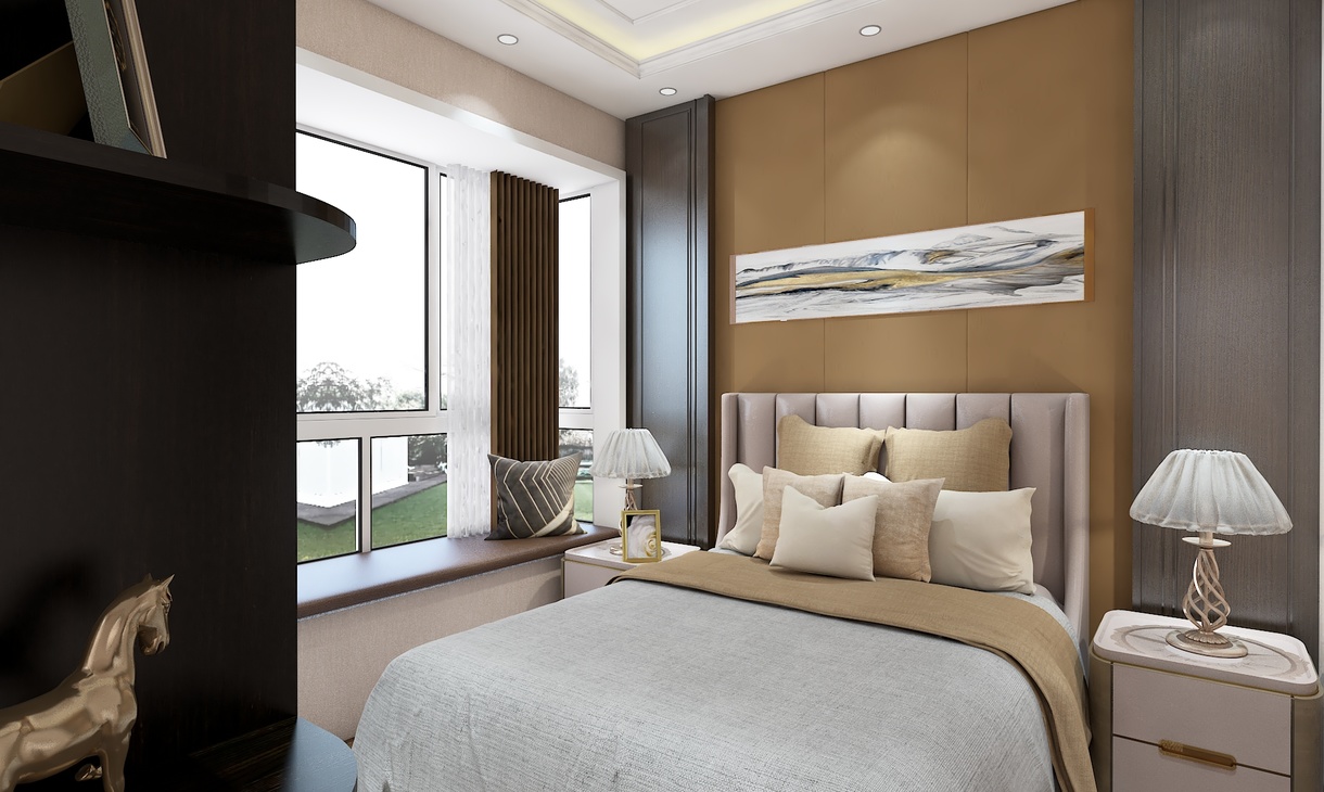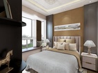主人房结合整体风格设计,床背景结合客厅电视背景以做呼应。