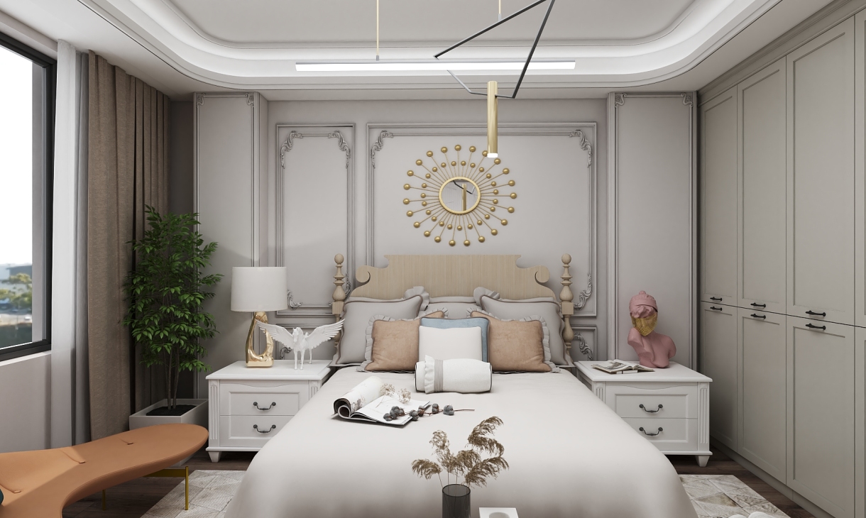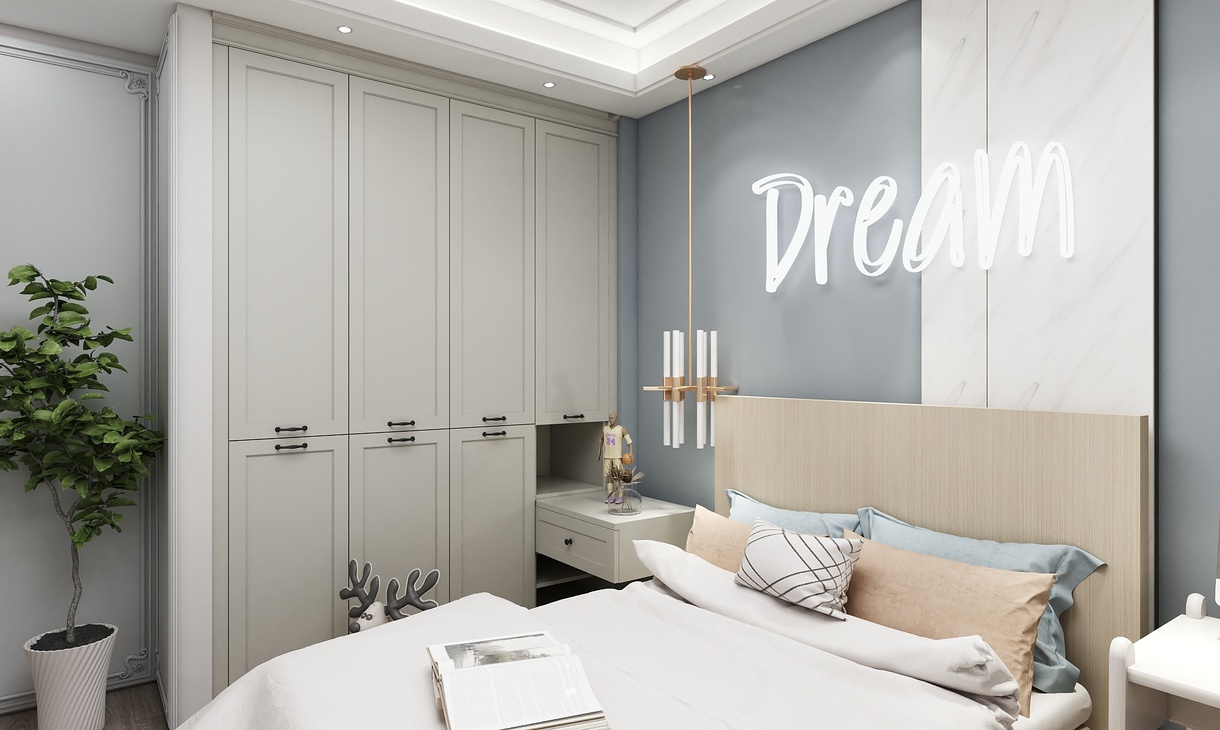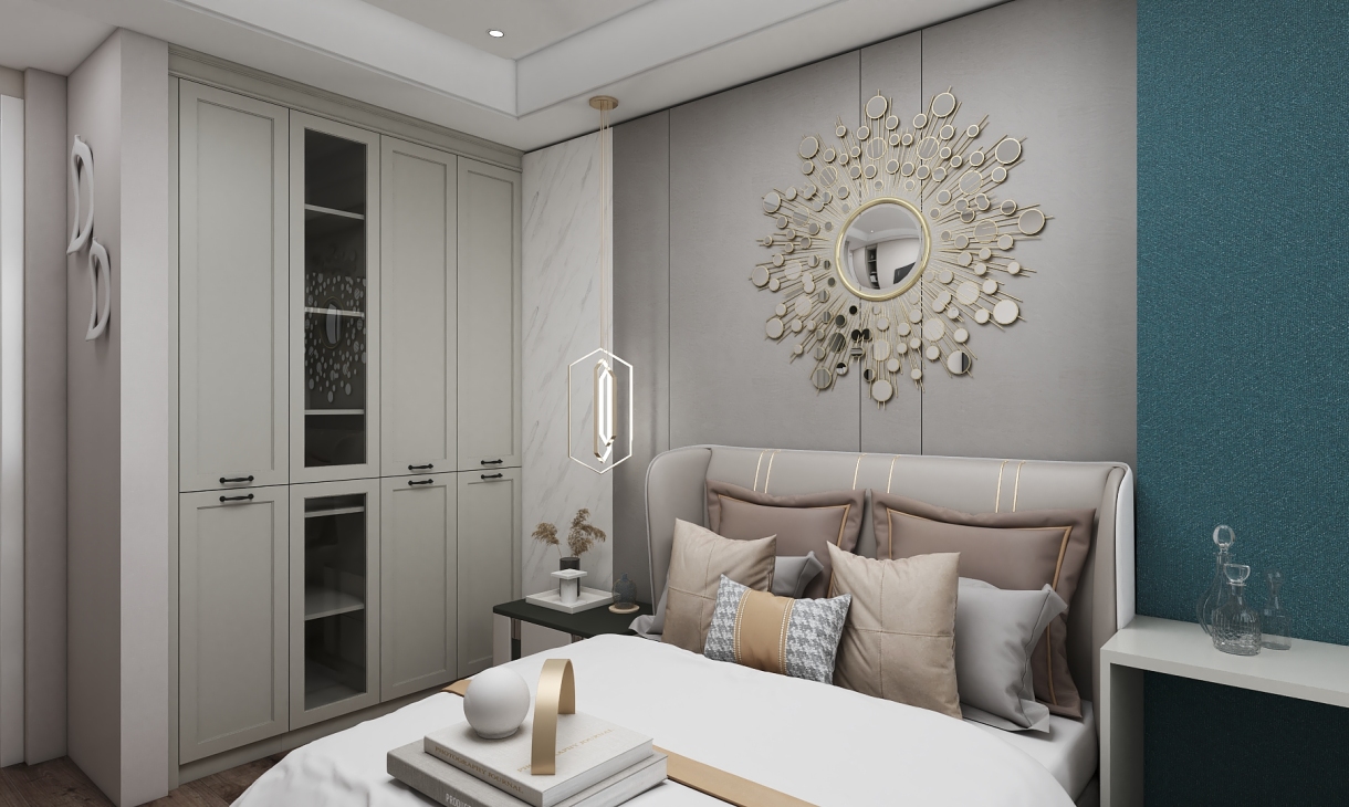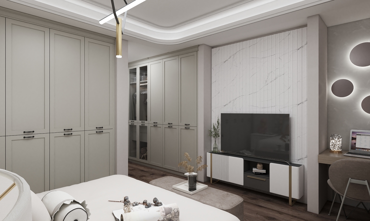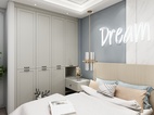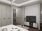 ▲主卧的空间,除却满足基本的睡眠需求之外,设计师以透亮的光感和柔软的纯色调进行搭配,营造出灰色调的视觉感受。这款衣柜,整体风格以简美简约为主,空间相对其它空间要显得更干净整洁,而且衣柜储物格的收纳能力强,可以选择玻璃门,让衣柜更加美观。