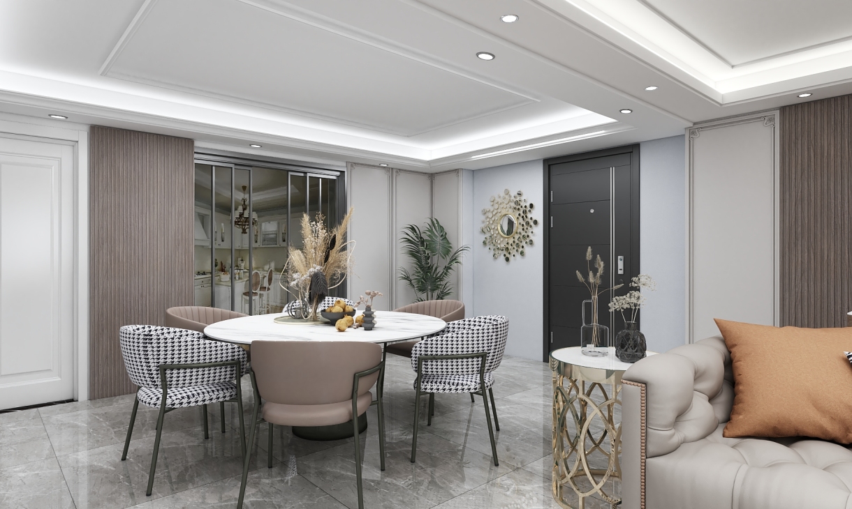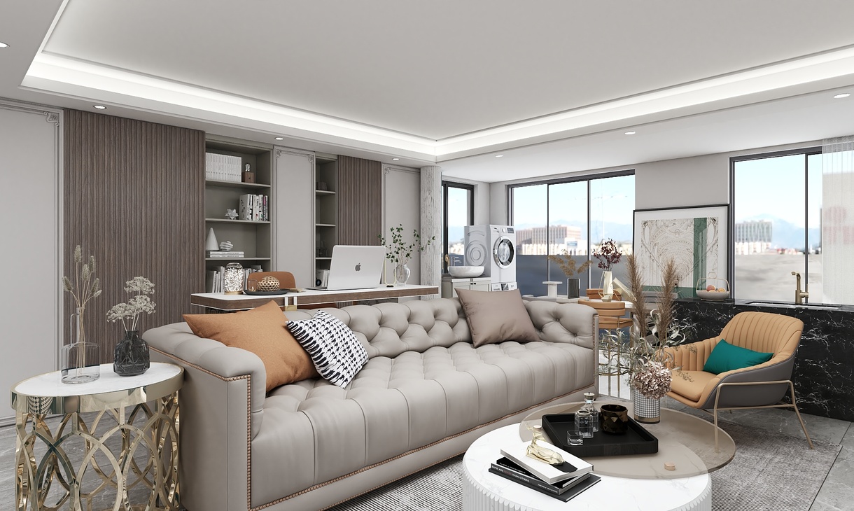 ▲所谓简美轻奢,实际上是以极致简约风格为基础,摒弃了一些如欧式、法式等风格的复杂元素,以更简洁的、柔和的线条代替,如选用简单线条的墙板等没有过多的雕刻修饰,通过一些精致的软装元素来体现它的高雅情趣。想要打造时尚轻奢感,客厅又不愿舍弃那种沉闷的颜色,用高级灰调打底,再用软装的色彩进行搭配,简单中透出精致。