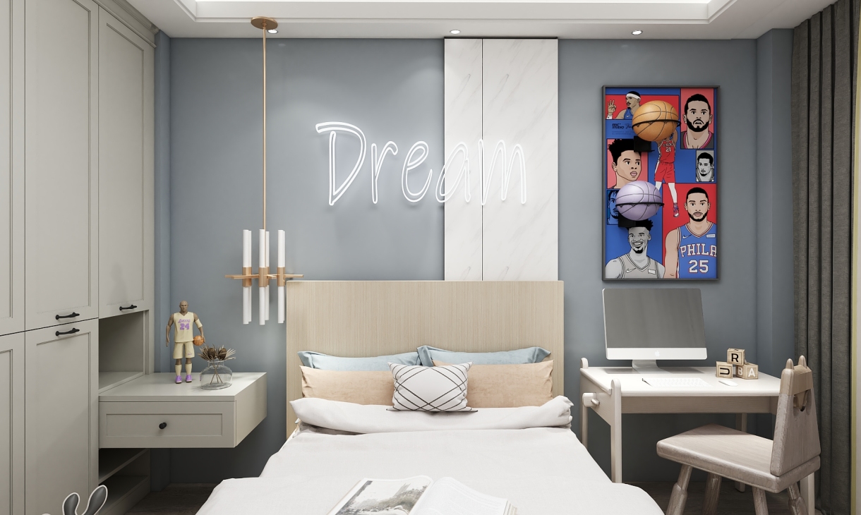 ▲男孩房装修指南,卧室都是以简约清爽为主,整体色调柔和,简简单单实用。灰色系的窗帘,简约的设计,流畅,充足的光照和独特的格调是能够令人充满平静而又明朗的美感。