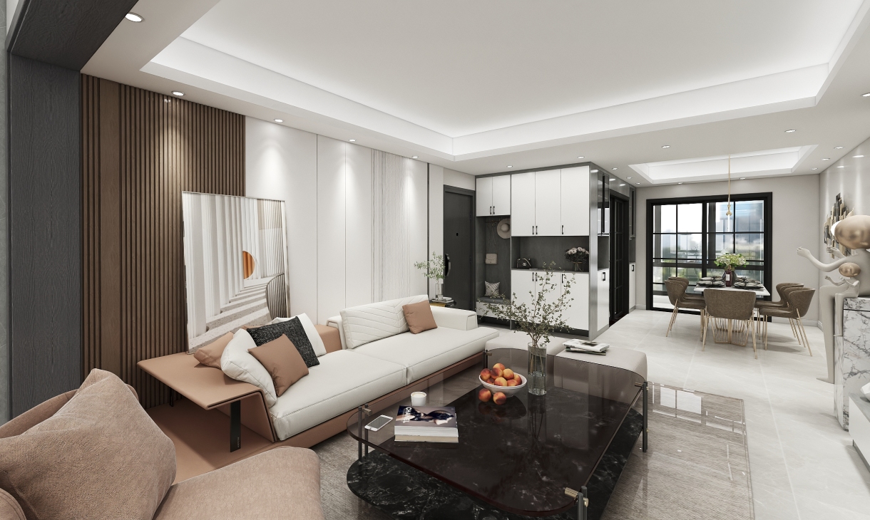 每个空间至少2张效果图+1张全案全景图展示,方案描述完整,所有空间需命名。