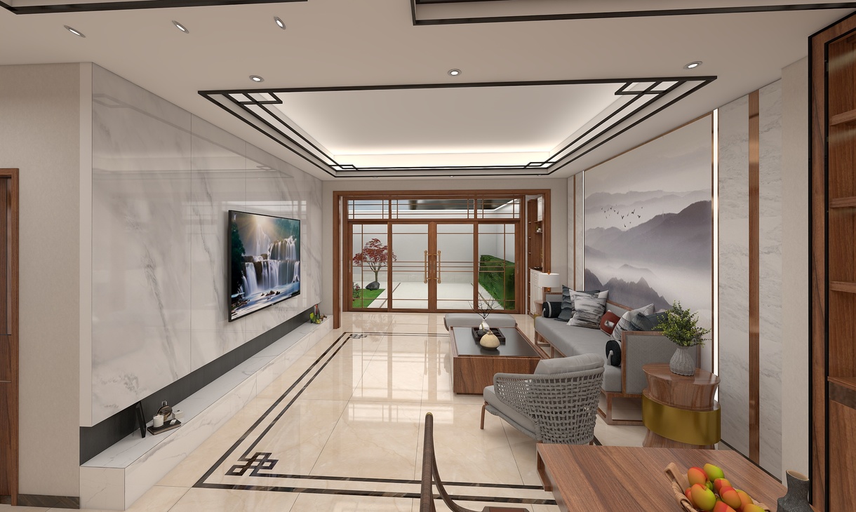 中式别墅装修典雅、沉稳、内敛,展现了中式风格的美感特质。红色的中式古典家具、米色吉祥图案的地毯及中式灯饰营造出中式文化特有的人文情怀。精致的配饰、巧妙的空间层次感烘托出含蓄的东方韵味。玄关过道设计,以中国山水画为背景,红木镶框、博古架、木刻雕花、造型独特的中式门设计营造出极富中国文化情调的生活空间。