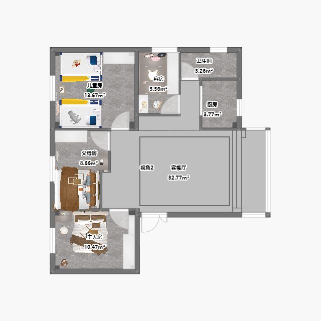效果图:全屋概览效果图、客厅效果图、餐厅效果图、厨房效果图、儿童房效果图、主卧效果图