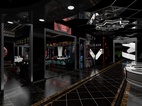 女宾区“红蜘蛛”主题感十足,顶墙灯光合理搭配来减少黑色来的的压抑感。