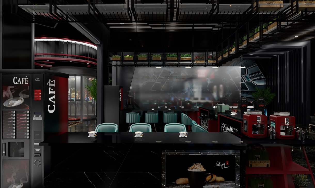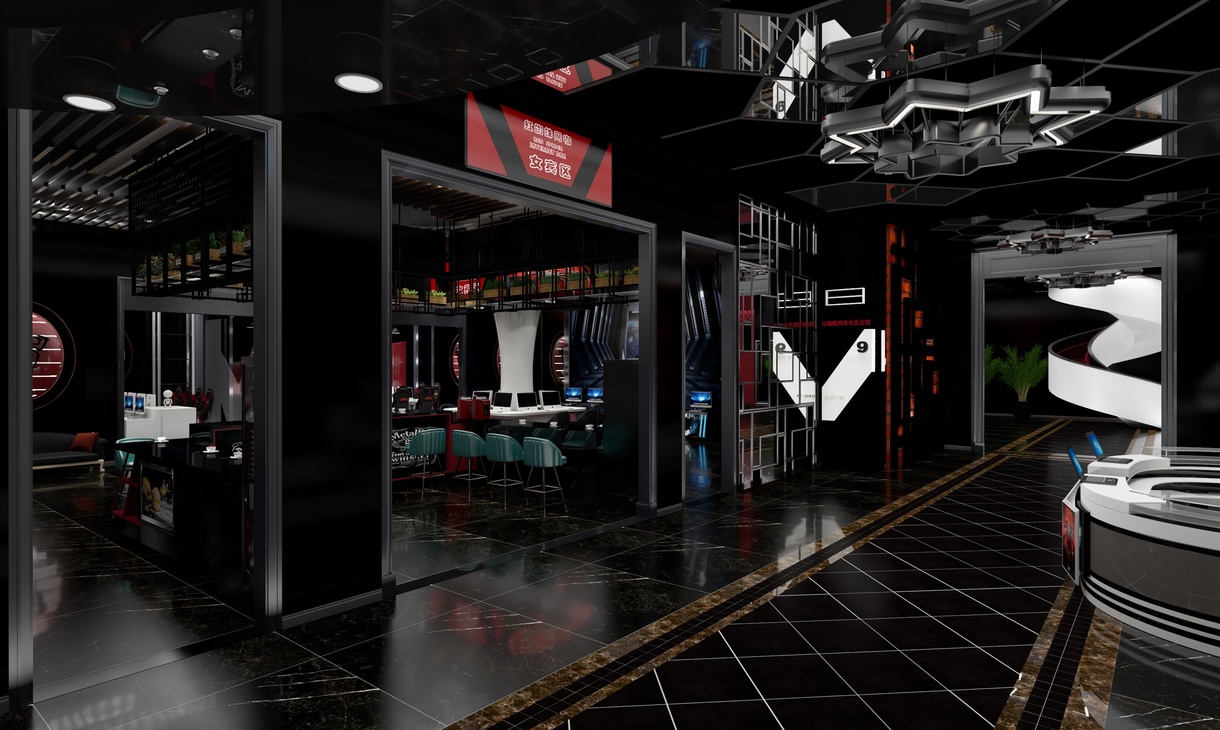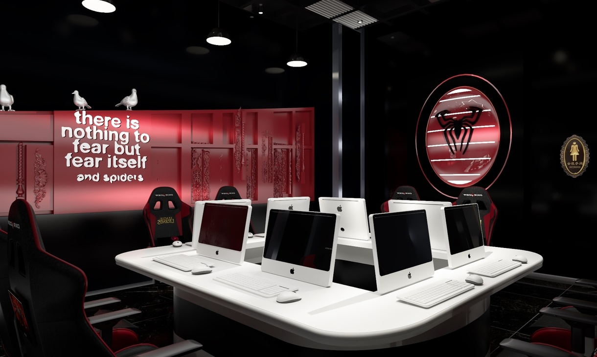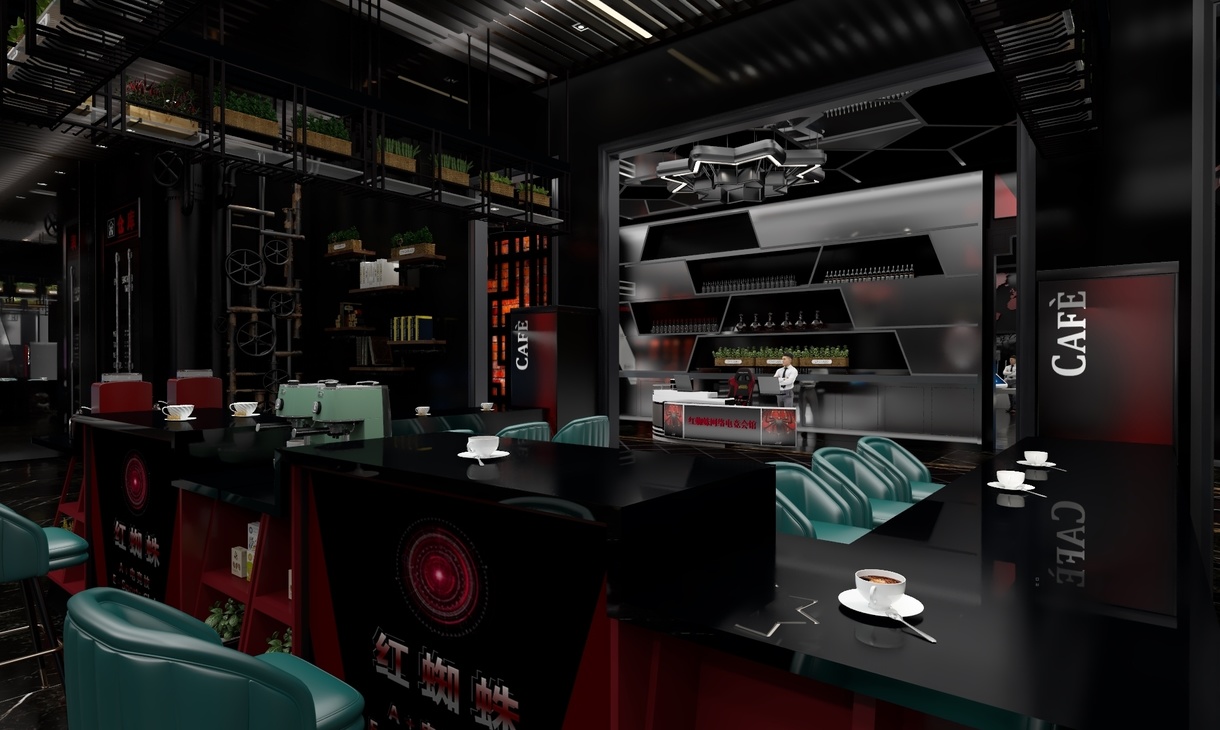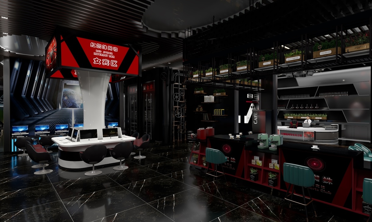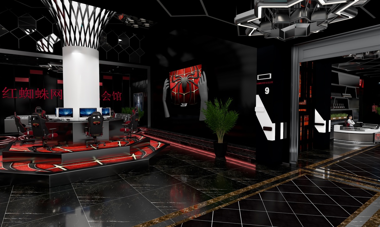 迷恋黑夜,喜张扬蔑视轻狂,沉稳大气,把远方构筑设计中,思绪蔓延如暗色毒药。 享受黑夜,既岁月静好亦温暖如斯 。一抹酡红,诉说激情尚未褪去的狂野。 嗜好黑夜,香烟咖啡与显示器幽暗的光,仿佛星空无限。 喜欢黑夜,喜欢你的颜色,你的神秘,你的魅惑,你的安宁,你的星光,你的无限可能——红蜘蛛网络会馆欢迎您(此项目前身为重卡维修基地,内部全部推翻,只保留原有建筑框架以及重金属素材重新开始构思策划)