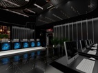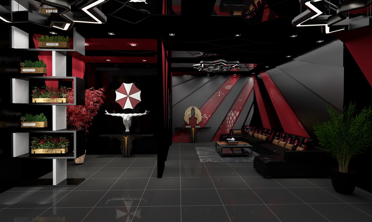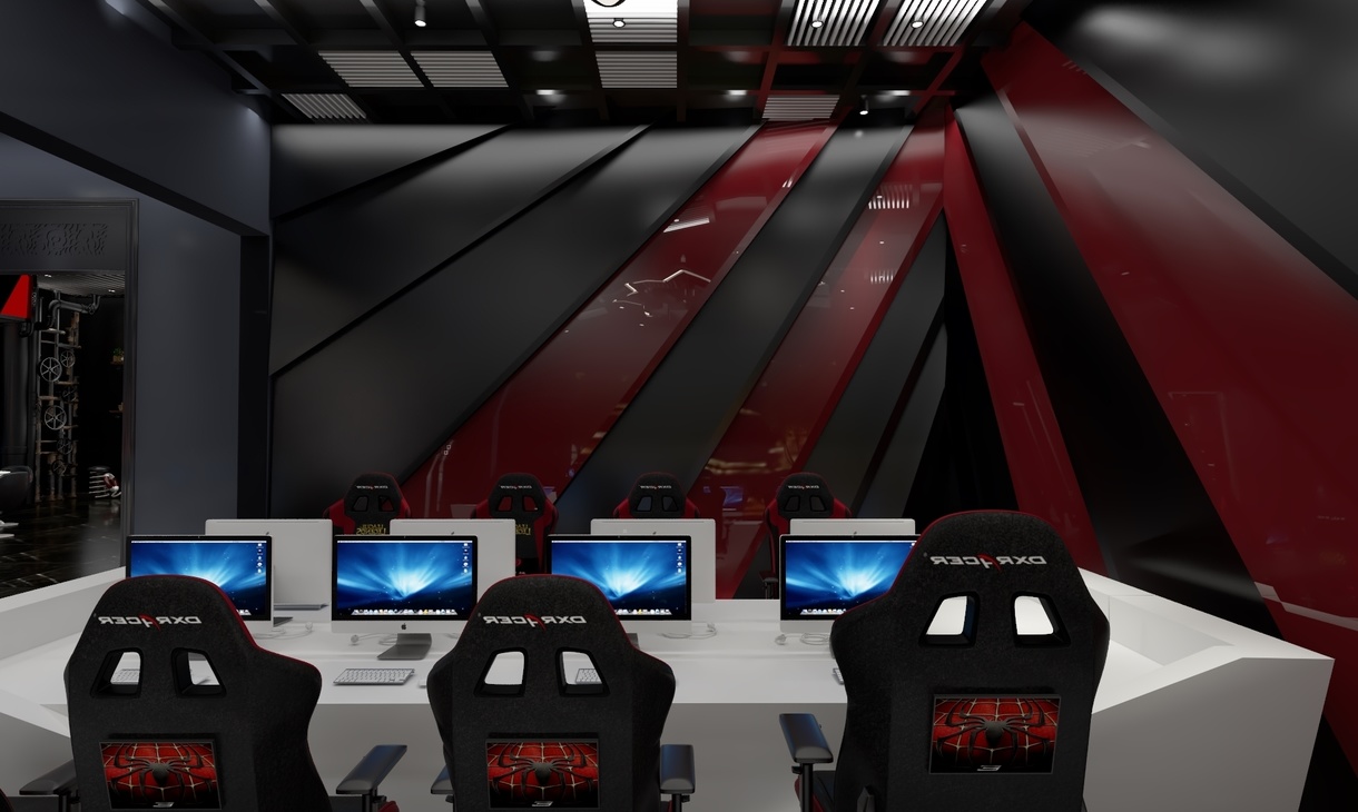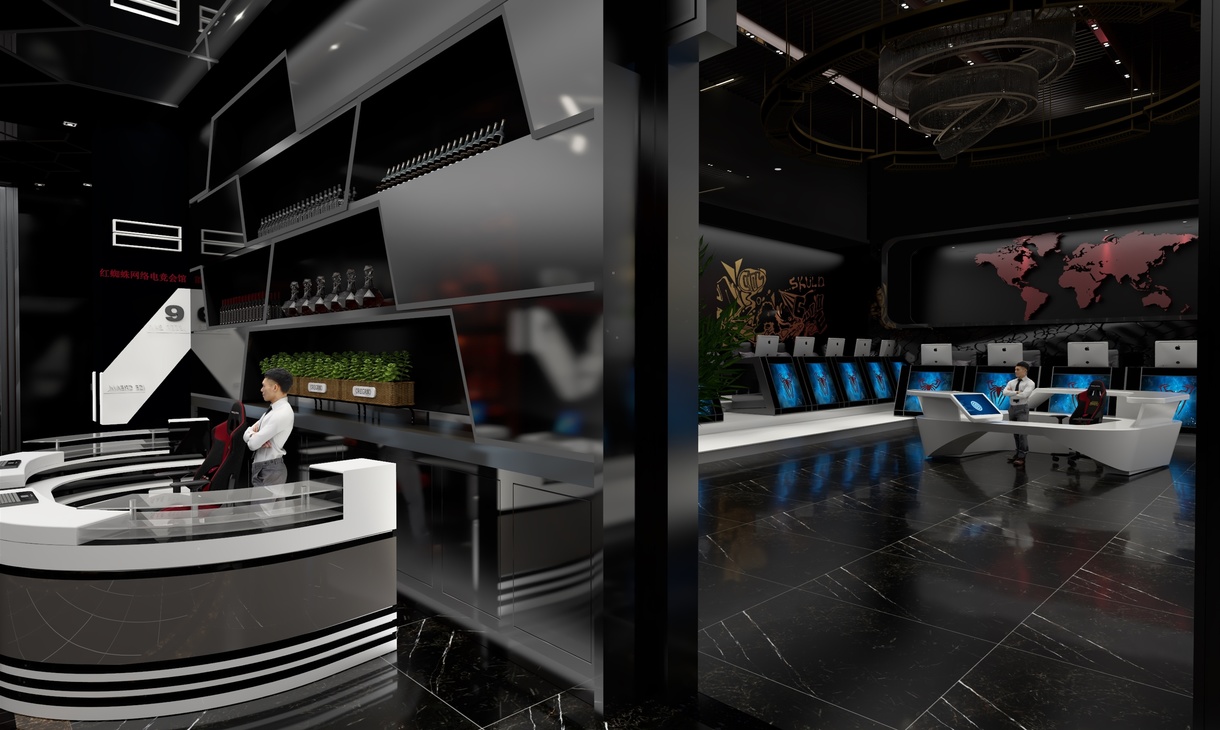 气氛不能输,一个气场极强的电竞会馆绝对可以让玩家、选手释放个人最大战斗力,分泌更多的肾上腺素进入暴走状态。本次案例整体设计上走的是现代前卫风,以黑色为主色调猩红色为辅,搭配空间感十足的灯光和炫酷的装饰元素,紧紧扣合“红蜘蛛”的品牌主题。