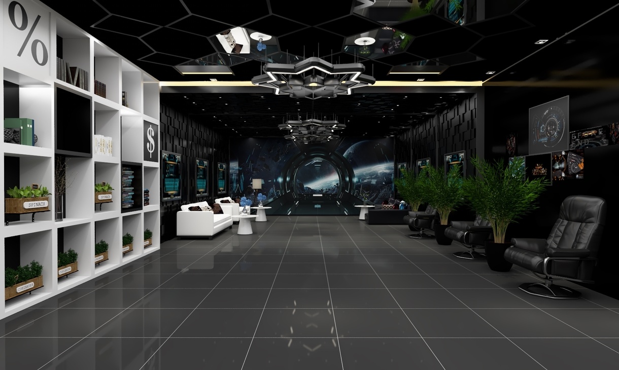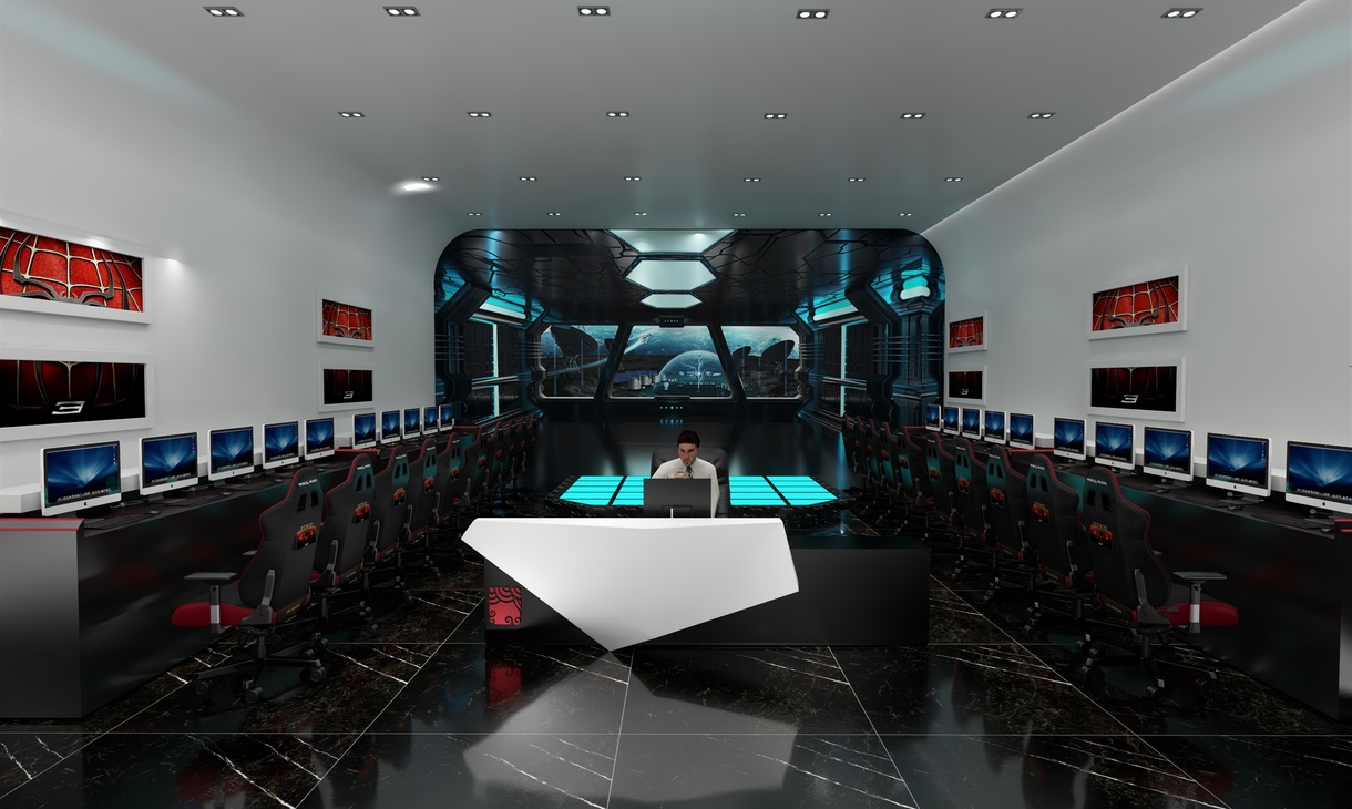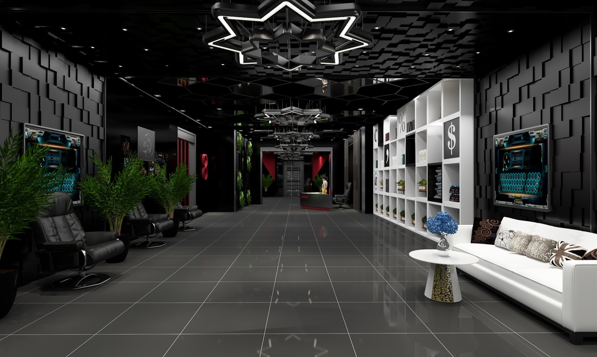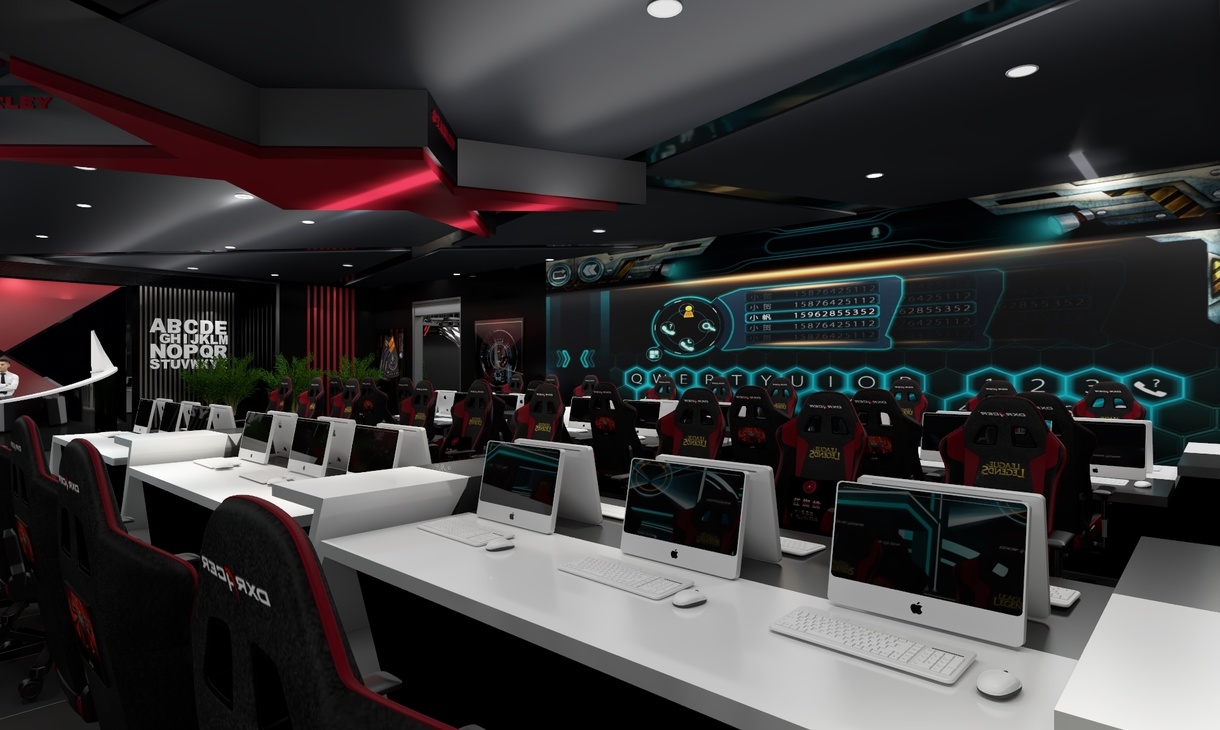 气氛不能输,一个气场极强的电竞会馆绝对可以让玩家、选手释放个人最大战斗力,分泌更多的肾上腺素进入暴走状态。本次案例整体设计上走的是现代前卫风,以黑色为主色调猩红色为辅,搭配空间感十足的灯光和炫酷的装饰元素,紧紧扣合“红蜘蛛”的品牌主题。