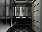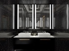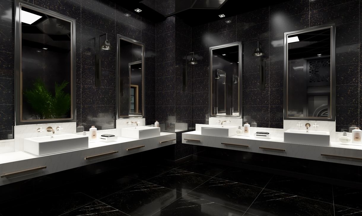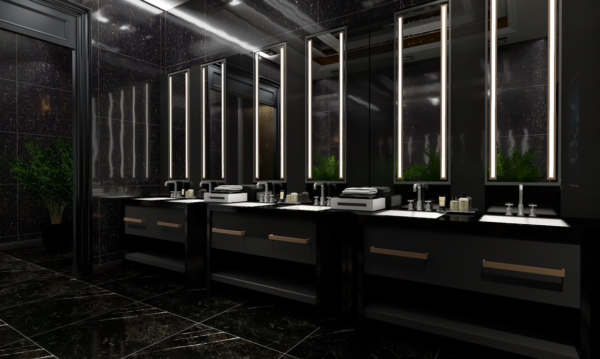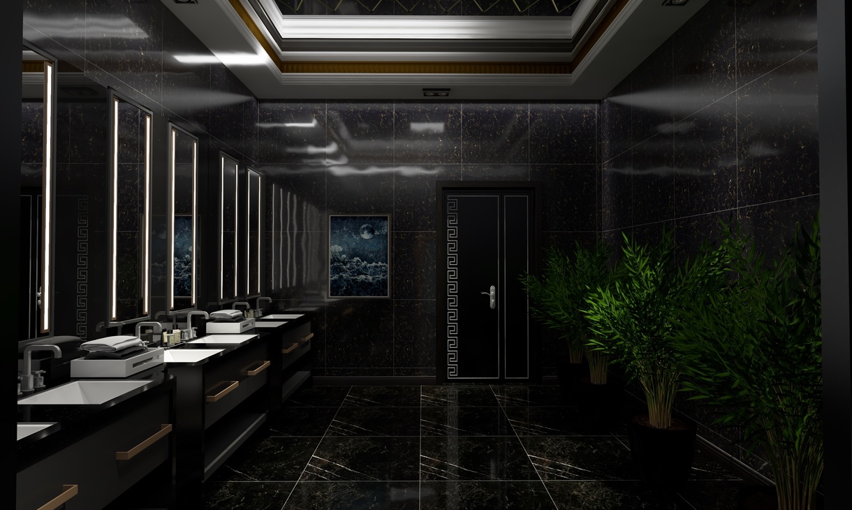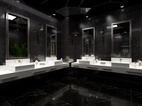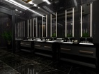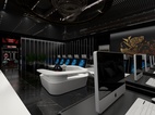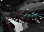 为了使人更加有比赛所需专注,男宾区墙面只有简单的涂鸦,饰物元素也极少,张扬黑色的神秘与魅力。