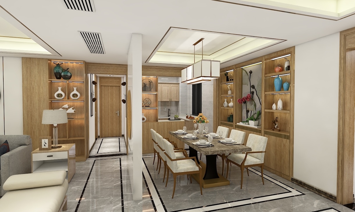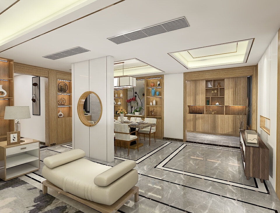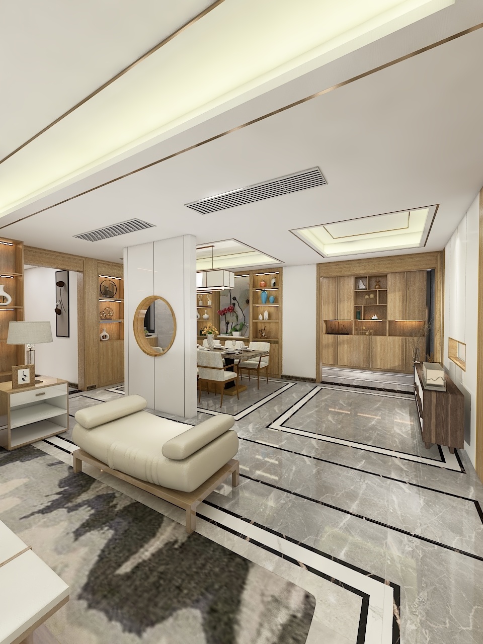 禅意新中式风格,大平层设计,木饰设计与轻奢瓷砖流行