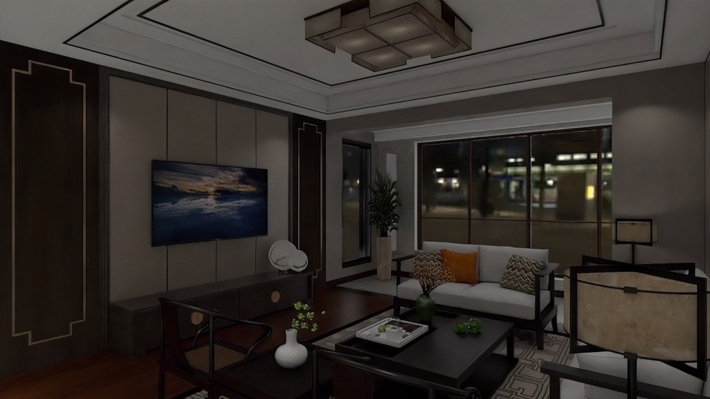 每个空间至少2张效果图+1张全案全景图展示,方案描述完整,所有空间需命名。