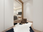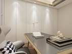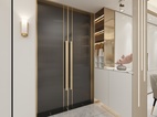 衣帽间采用了简约的设计理念,运用了2个L型柜体的设计,合理的利用了空间的动线。方便业主的动线走动。
