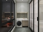 阳台地面采用了深灰色仿古砖,用300*600工字贴的手法,让空间不再单独。洗衣柜后的暗花砖设计,也是让空间具有独特性却不张扬。墙面其余面则用浅灰色仿古砖搭配。仿古砖的利用,加大了防滑性的同时,还有很强烈的凹凸纹理质感。
