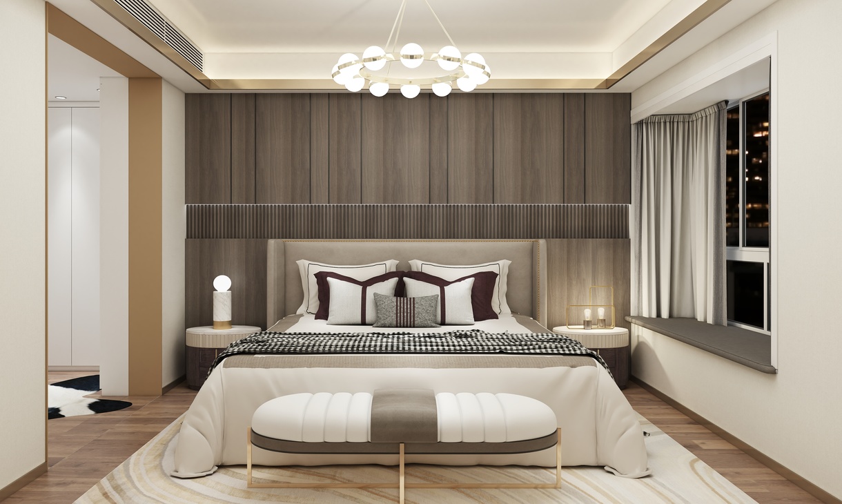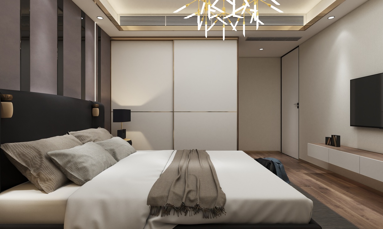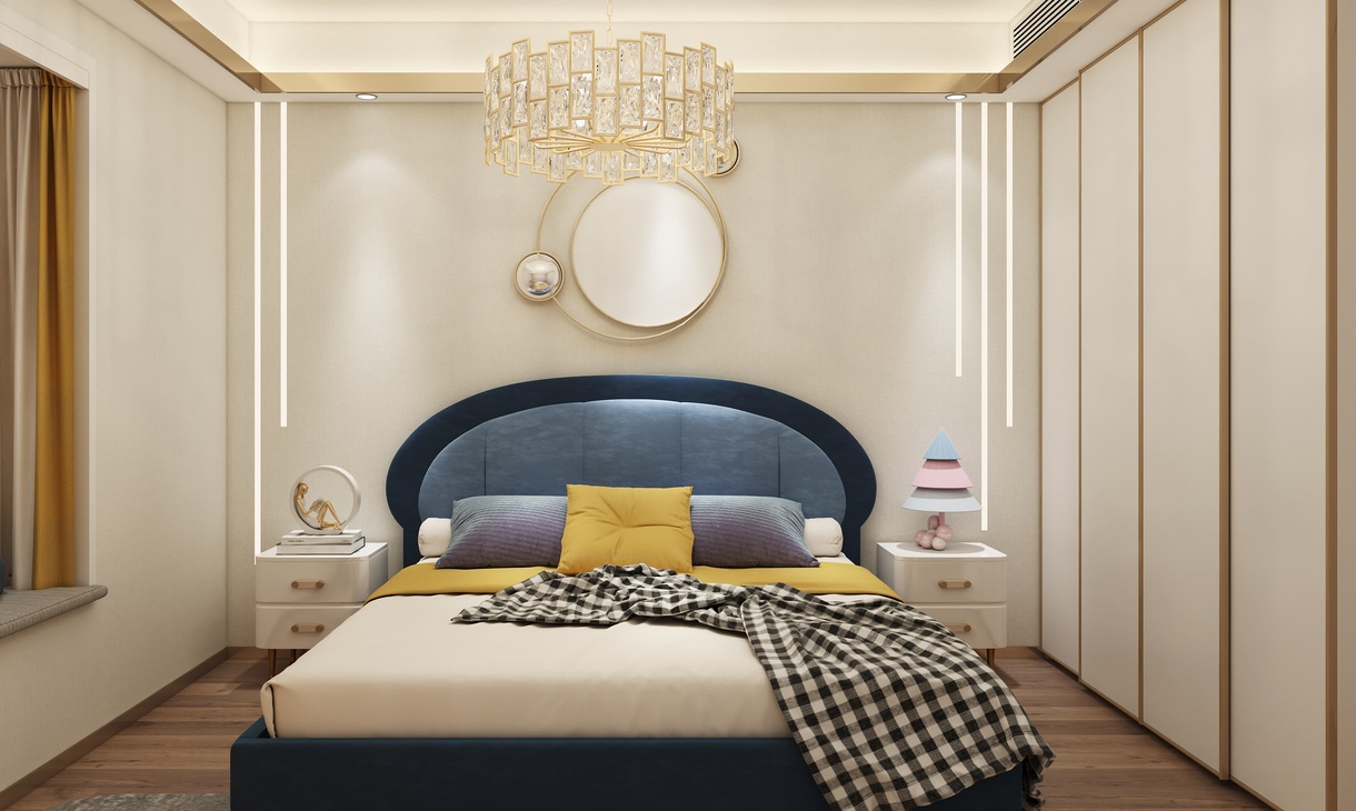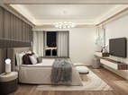 客卧的设计以简约时尚为主题,运用光的美,来营造整体视觉感观。