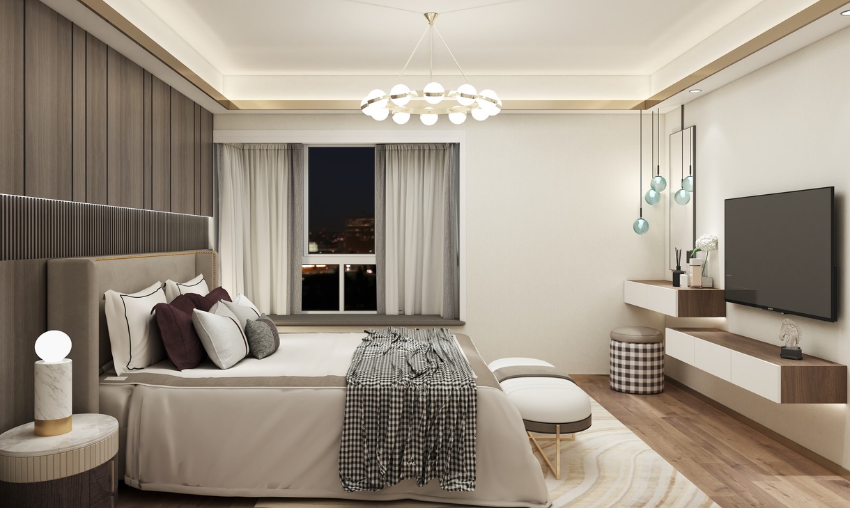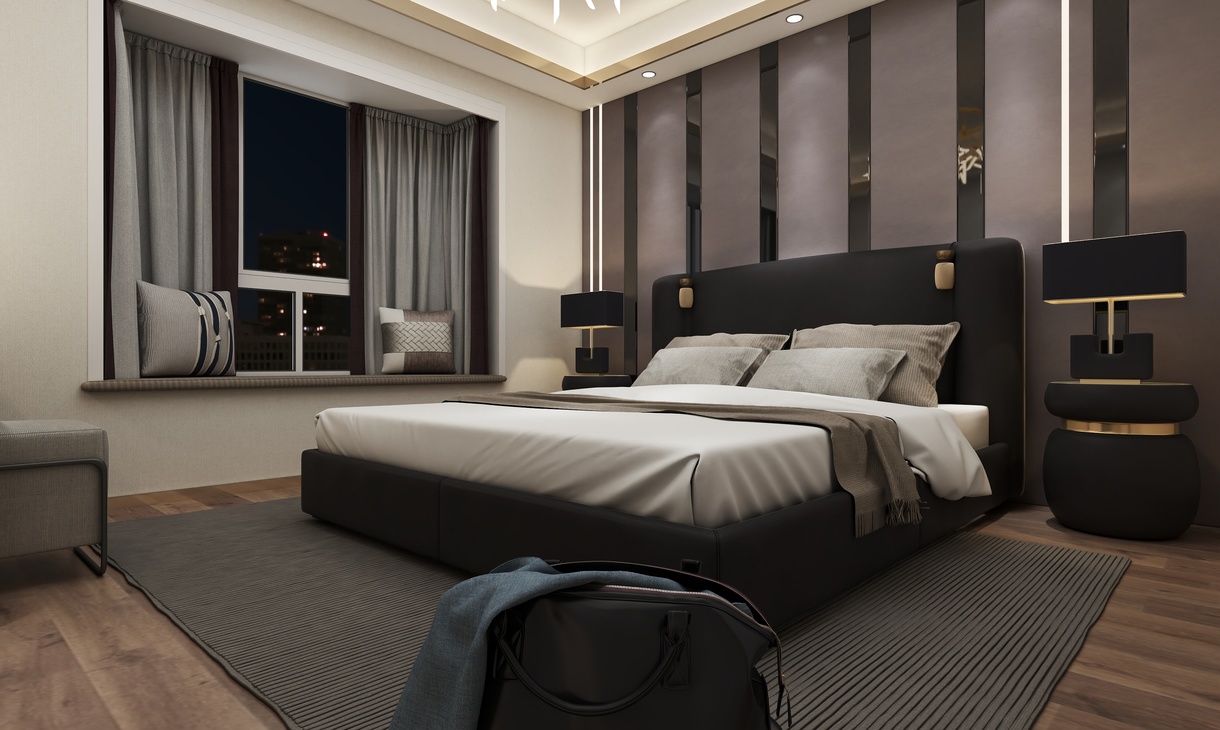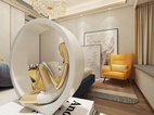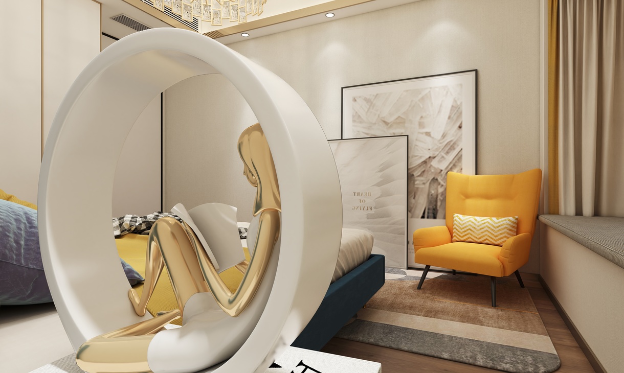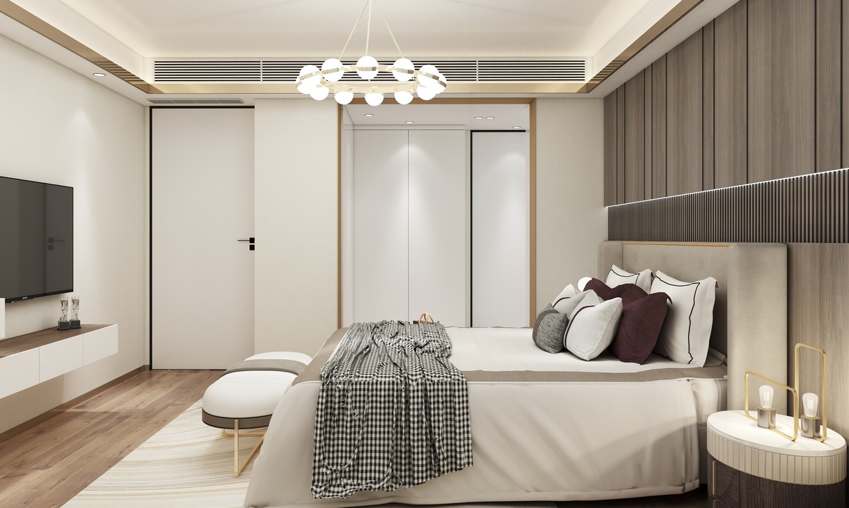 客卧的设计以简约时尚为主题,运用光的美,来营造整体视觉感观。