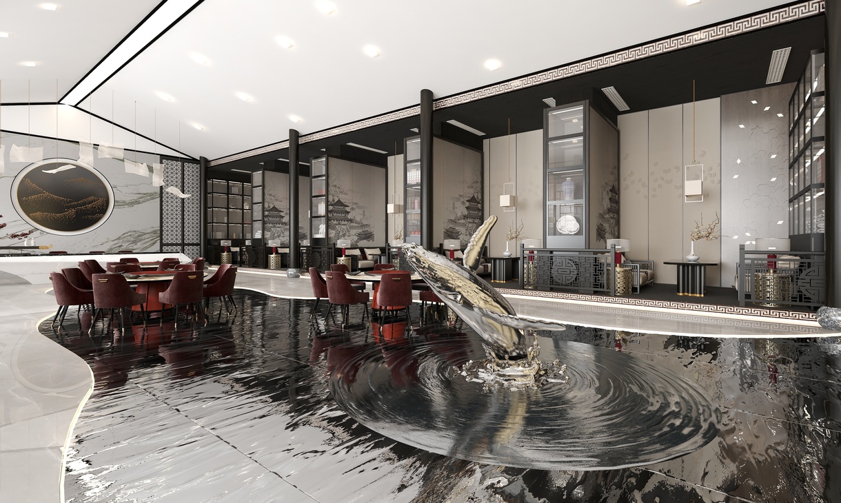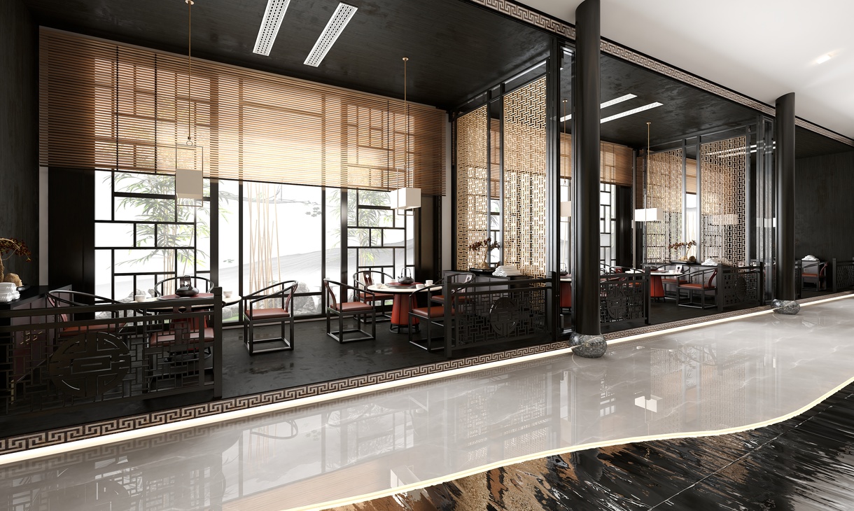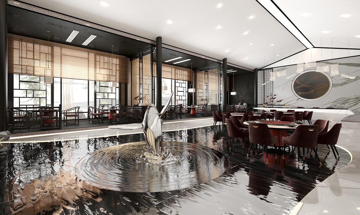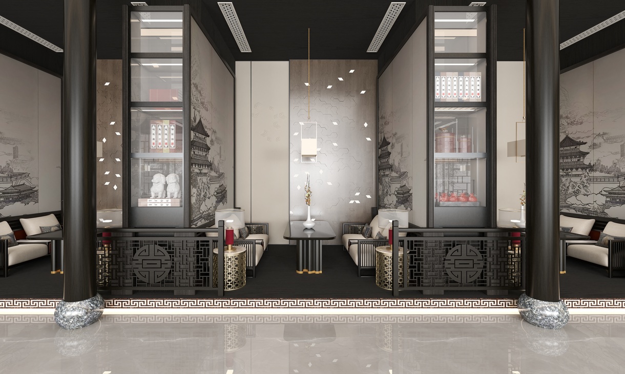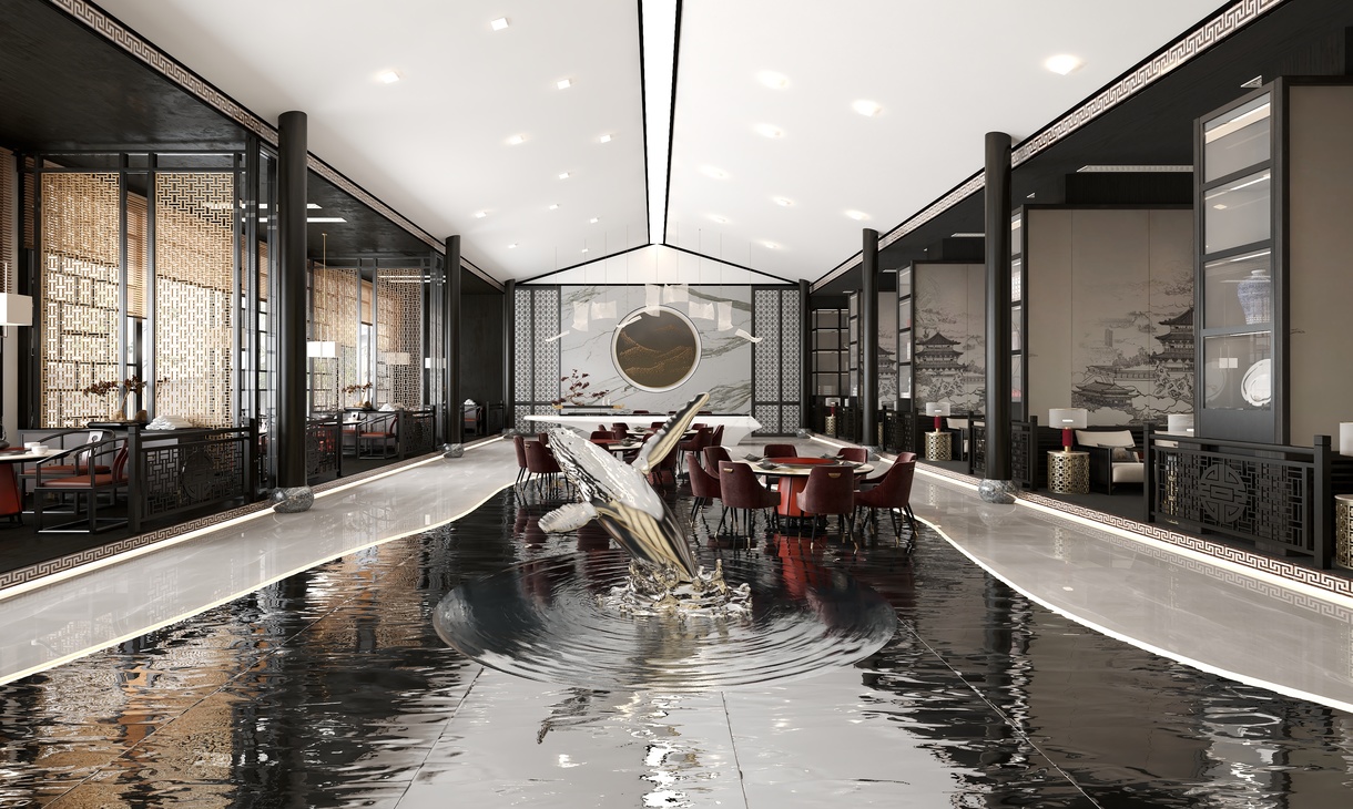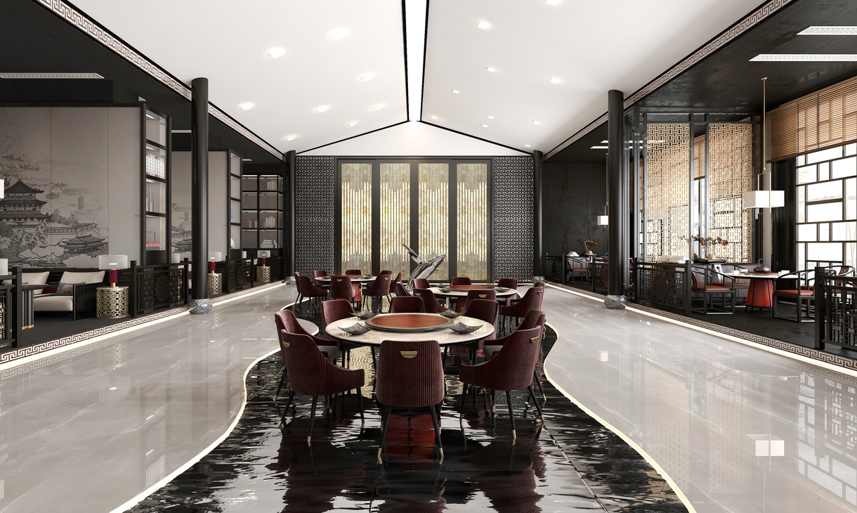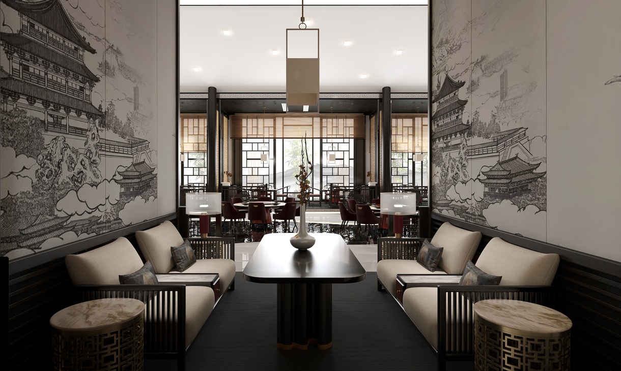 本设计为大型新中式商业餐厅设计,设计灵感来源于宋代词人晏殊的一首《蝶恋花·槛菊愁烟兰泣露》,名句:“昨夜西风凋碧树,独上高楼,望尽天涯路”被世人广为流传;也经常被学者作为学习三境界中的第一境界,形容在学习道路的上的孤独凄凉,前路漫漫,只有不畏怕孤独寂寞,才能探索有成。