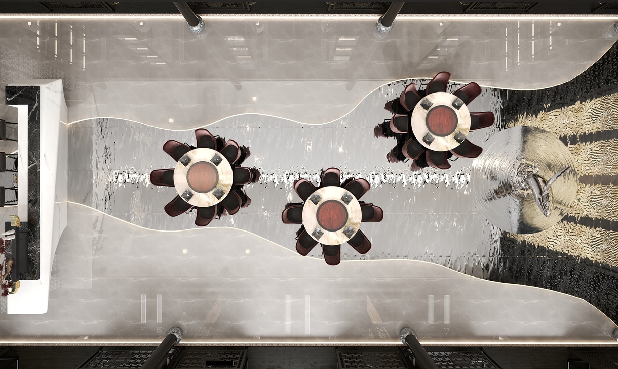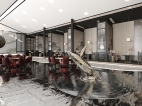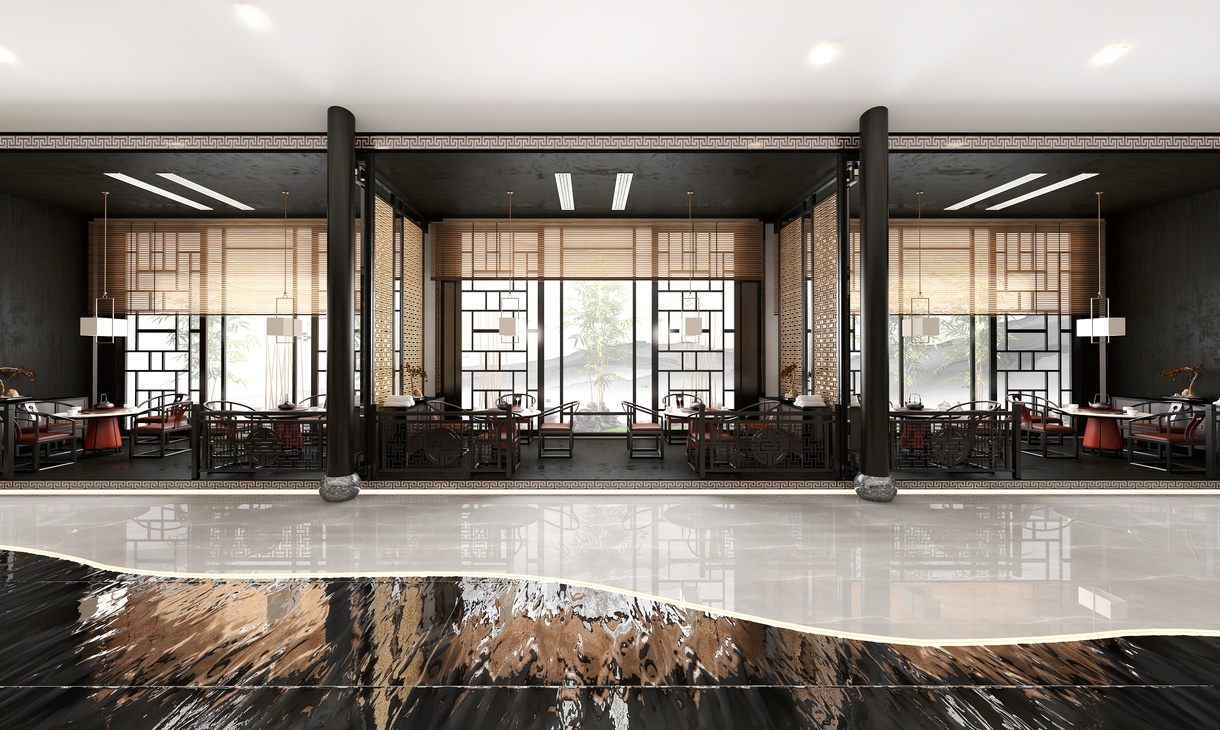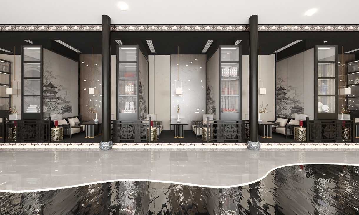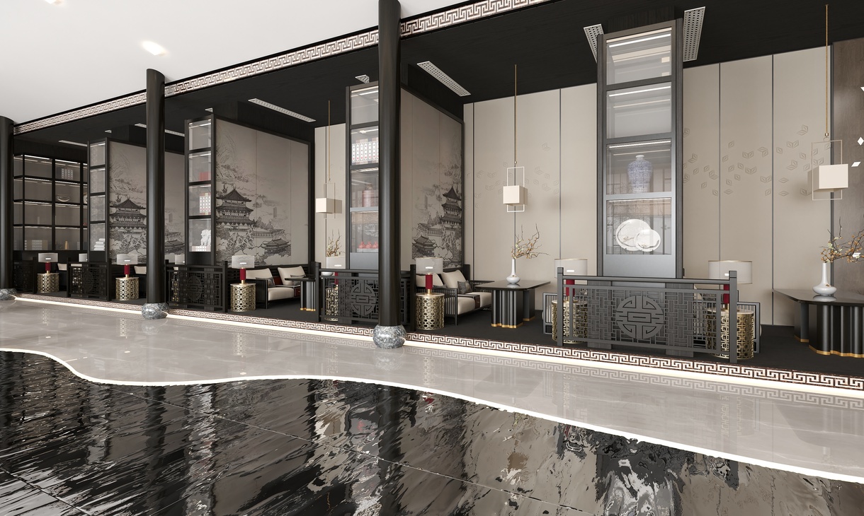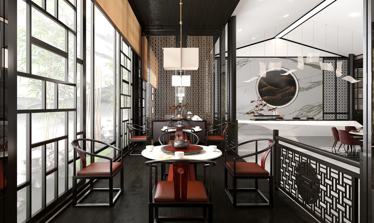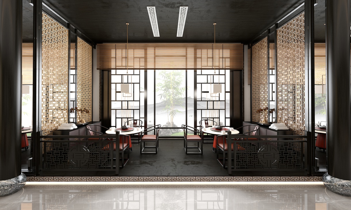 本设计为大型新中式商业餐厅设计,设计灵感来源于宋代词人晏殊的一首《蝶恋花·槛菊愁烟兰泣露》,名句:“昨夜西风凋碧树,独上高楼,望尽天涯路”被世人广为流传;也经常被学者作为学习三境界中的第一境界,形容在学习道路的上的孤独凄凉,前路漫漫,只有不畏怕孤独寂寞,才能探索有成。