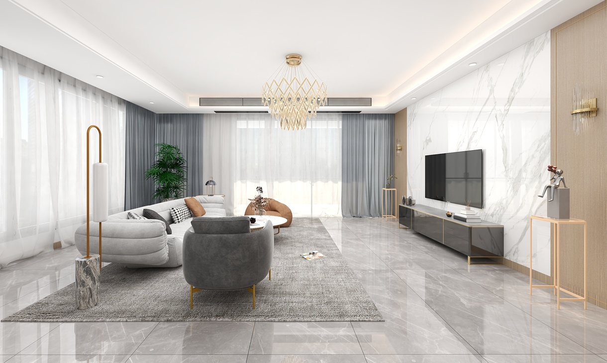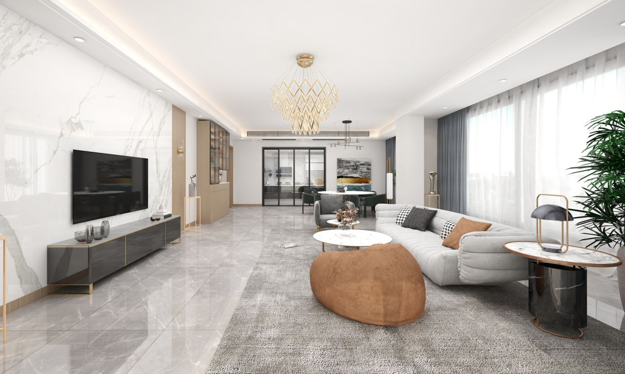 原木色于石纹的搭配,充分体现出现代风格的清爽简约。