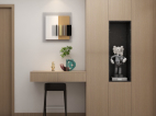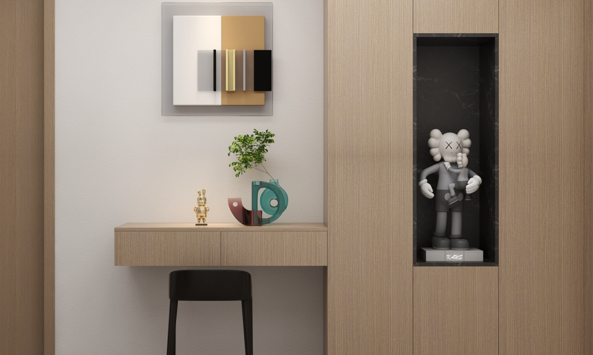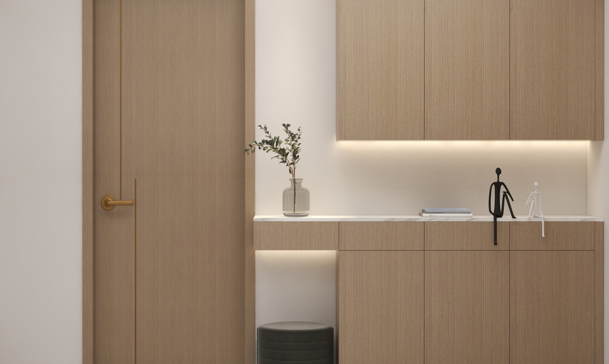 两个玄关柜的设计都兼具收纳于展示的效果,不常住所以更多的去考虑了客人来家里做客的体验感。