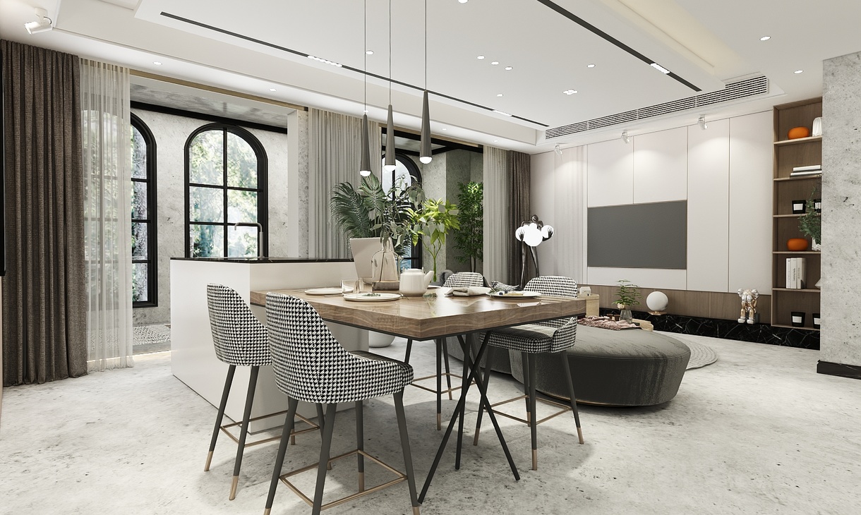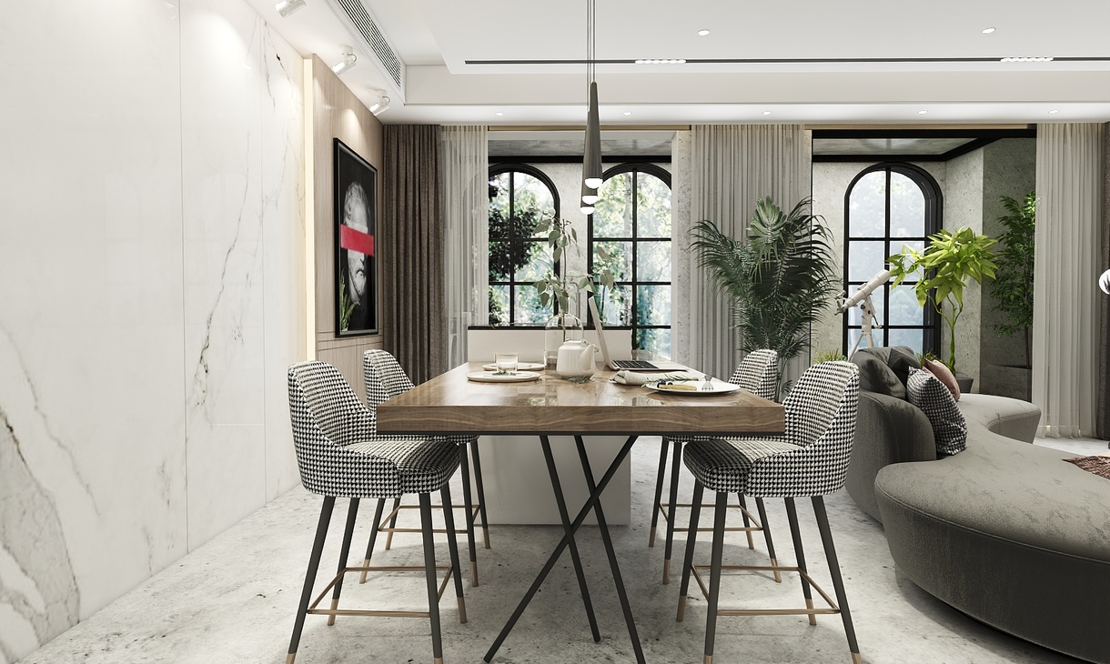 餐厅由混搭风打造而成,将简约主义融入到自己的生活当中,为单调的生活增添不少乐趣。如果想要完全混搭的话,这种的设计一定适合自己的装修风格,混搭或者是是多功能沙发,让整个餐厅都充满了韵味。