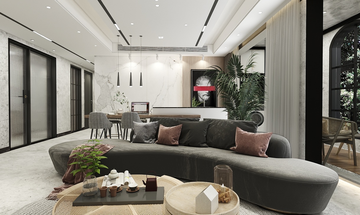 新中式的卧室,总是散发着岁月沉淀的味道,这样的装饰风格,再适宜,不刺激休息。本案是以简约的现代元素将随手拈来的中式古典圈椅作基础并镶嵌,现代的简约搭配中式雕花,再配合着流光溢彩的绿植,渲染出优雅时尚的空间氛围。
