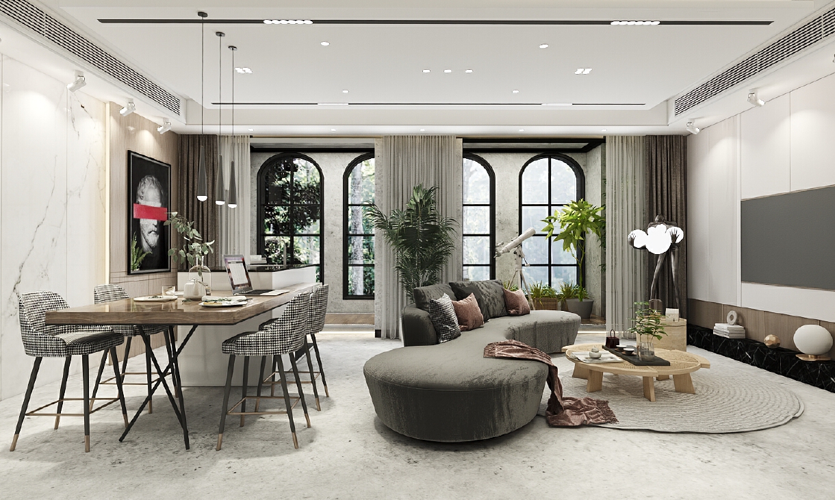 每个空间至少2张效果图+1张全案全景图展示,方案描述完整,所有空间需命名。