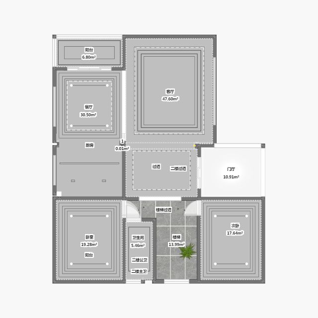 每个空间至少2张效果图+1张全案全景图展示,方案描述完整,所有空间需命名。