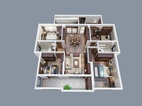 原户型格局方正,空间开放。调整平面,让空间有四个完整的卧室空间。以客餐厅为轴线,向东西方向分布私人空间。客厅与主卧墙体互相错开,保证储物的机能,同时能让立面材质有个对比。餐厅以中轴线两边做储物柜,极大的满足收纳需求。