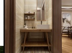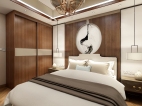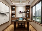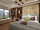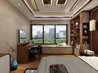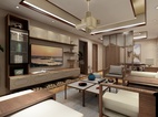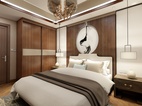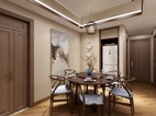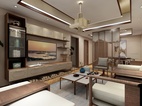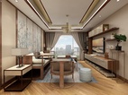 本案以“韵”为题,在整体空间中和谐基调上彰显出浪漫的气质,软装与硬装上的中式元素的运用,成就了本案的精髓与灵魂,设计中不拘泥于单一的设计风格,力图在奢华优雅中呈现出中式的文化气息,追求深沉里显露尊贵,典雅中浸透奢华的设计表现。利用餐厅嵌入空间与冰箱相结合的方式,使得此处柜体巧妙结合,为空间增添了一抹平整性,是本案的设计亮点之一;书房采用一种两边对称高柜中间矮柜的组合形式,凸出了中式浓厚的元素,是本方案的设计亮点之二;主卧空间不仅设计一组木兰烤漆平开门材质的衣柜,同时又把阳台打掉,设计了一组供业主休闲、梳妆的飘窗柜组合,即增大主卧的储藏空间,同时也彰显了业主的生活品味。