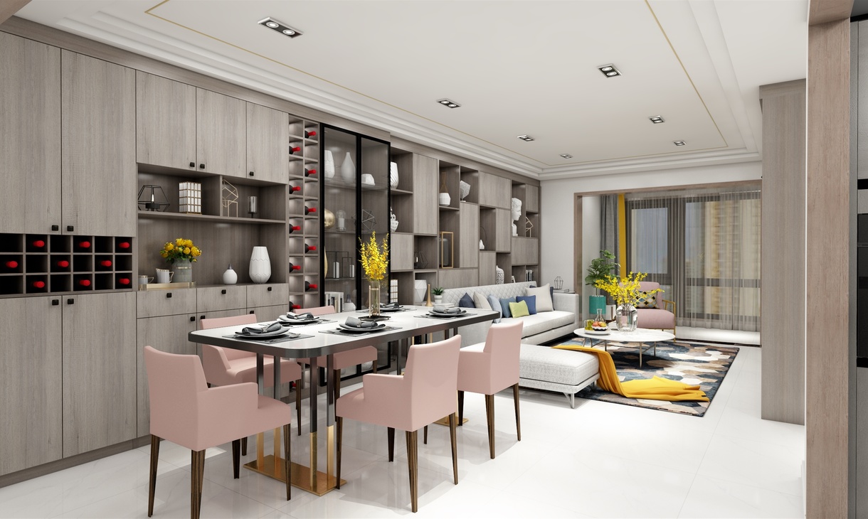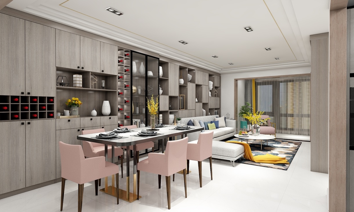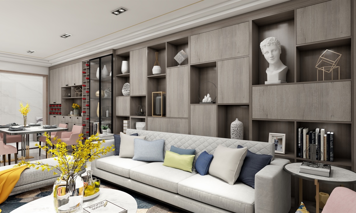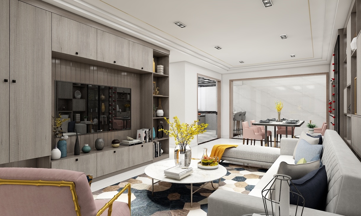 现代风格 整体定制家居做旧效果。搭配简约,轻奢家具,时尚家私。营造时尚大气的装修效果。
