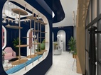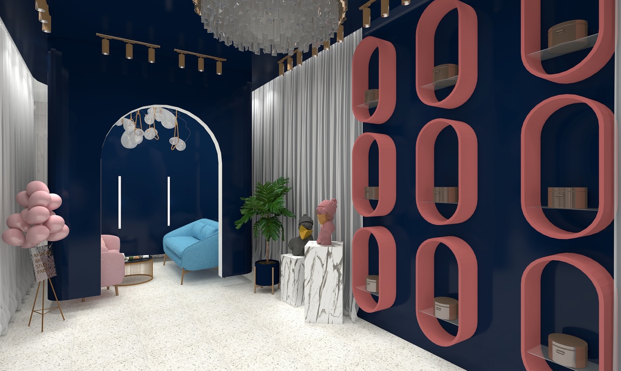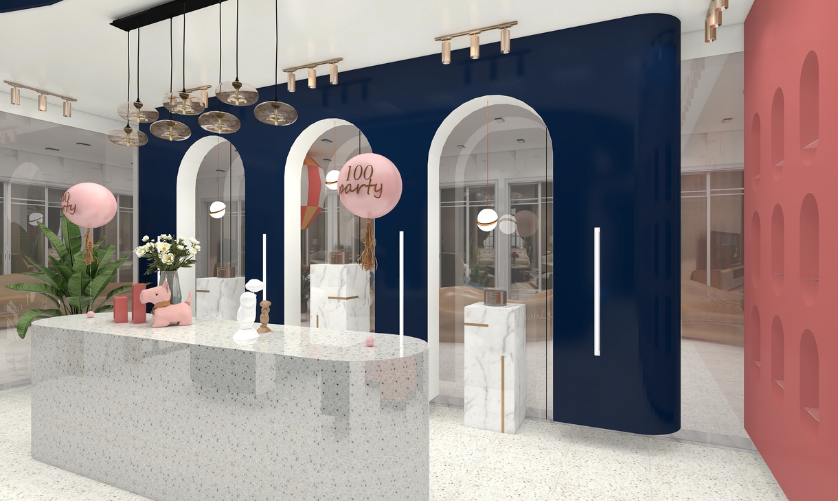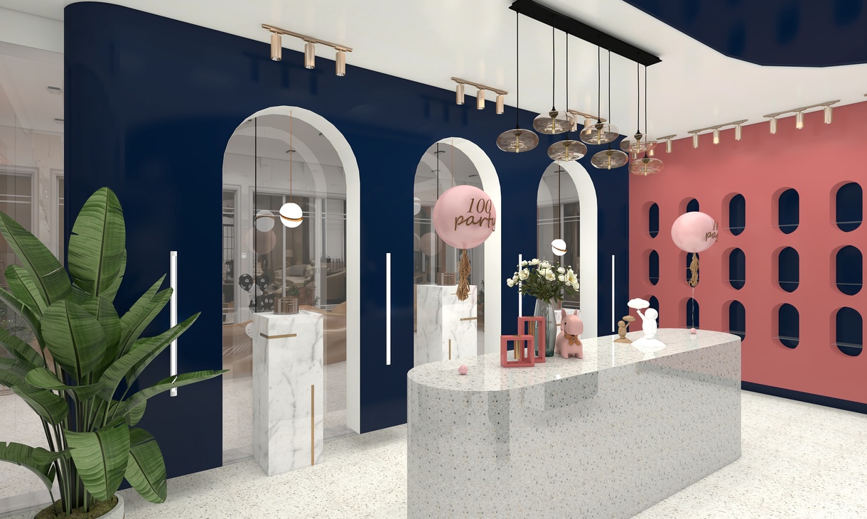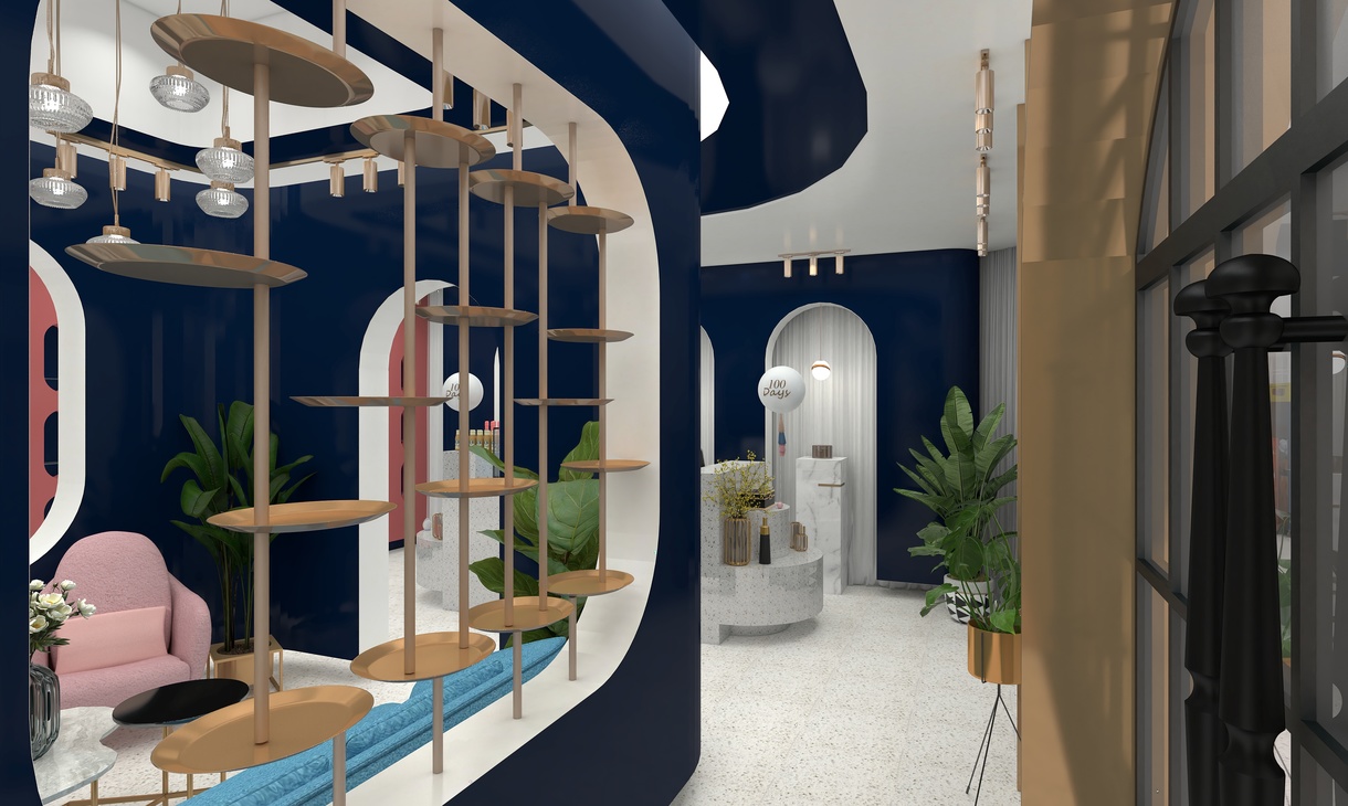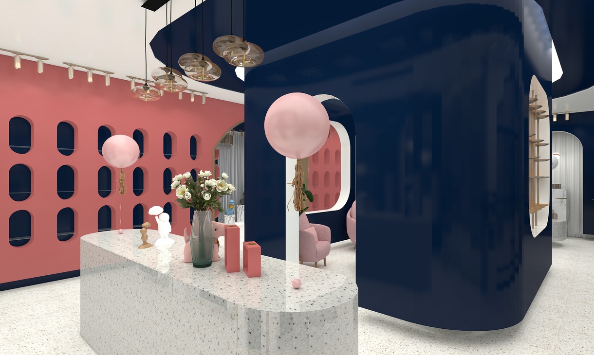 工装案例,办案运用了大量的圆弧形造型,来营造出不一样的轻奢风格,2种颜色的搭配,使得整体看上去更加的高端大气。中间与外围一些圆弧拱门造型,采用了悬空的做法。让空间看上去更加的高大。此案例适合于高端商品的装修风格。让人有一种热恋般的滋味,一进去就能夺人眼球